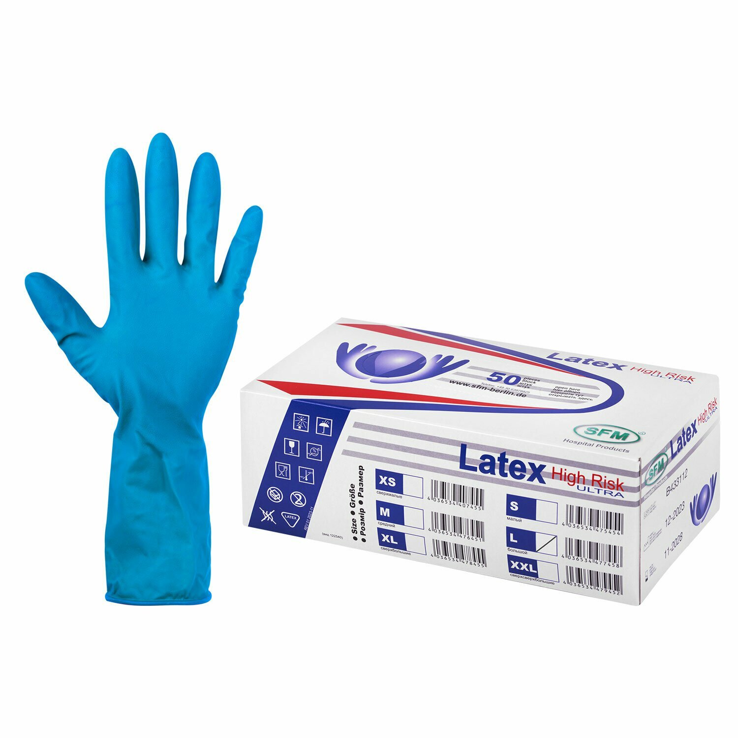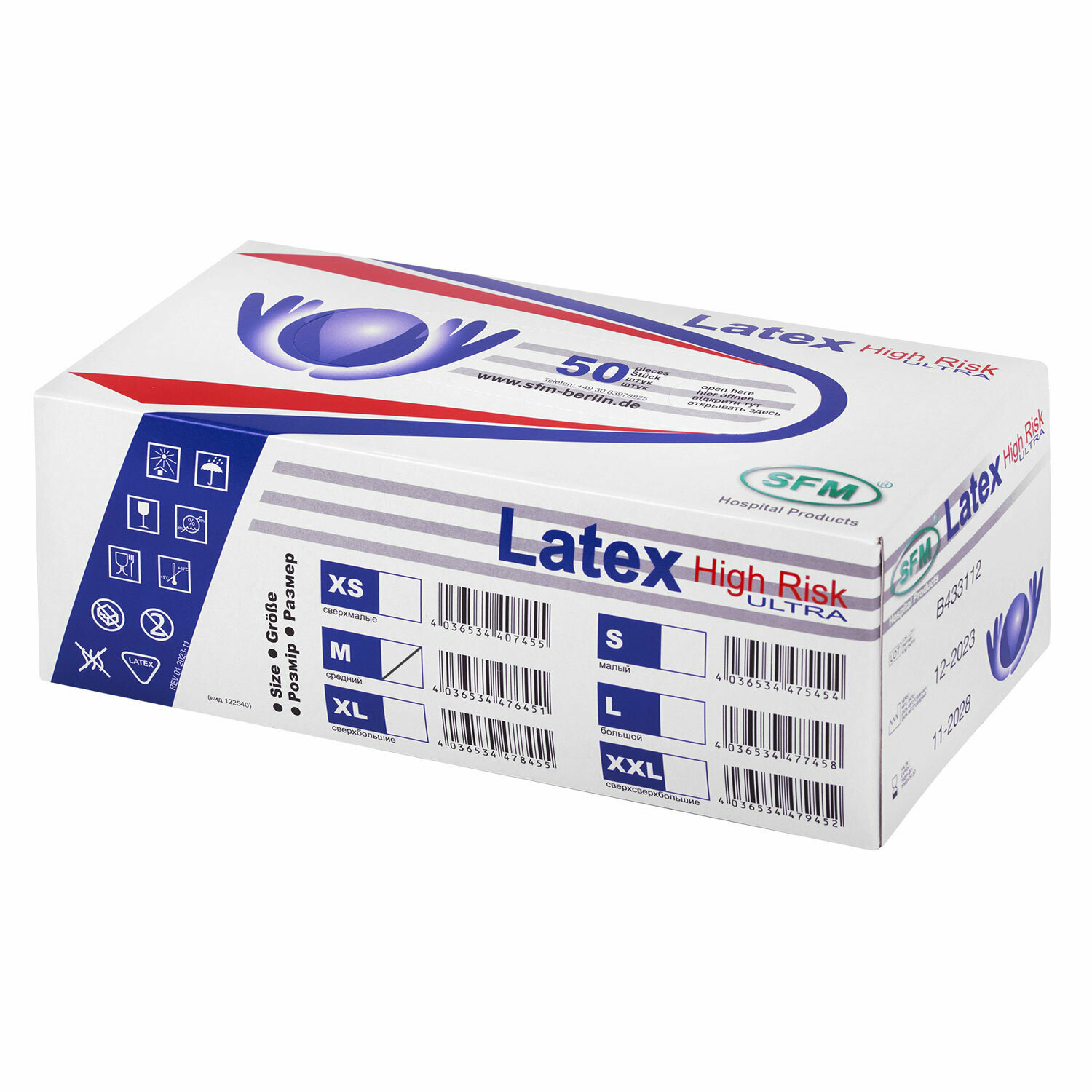 Купить Перчатки латексные SFM смотровые, сверхпрочные, HIGH RISK ULTRA, 25 пар, размер L