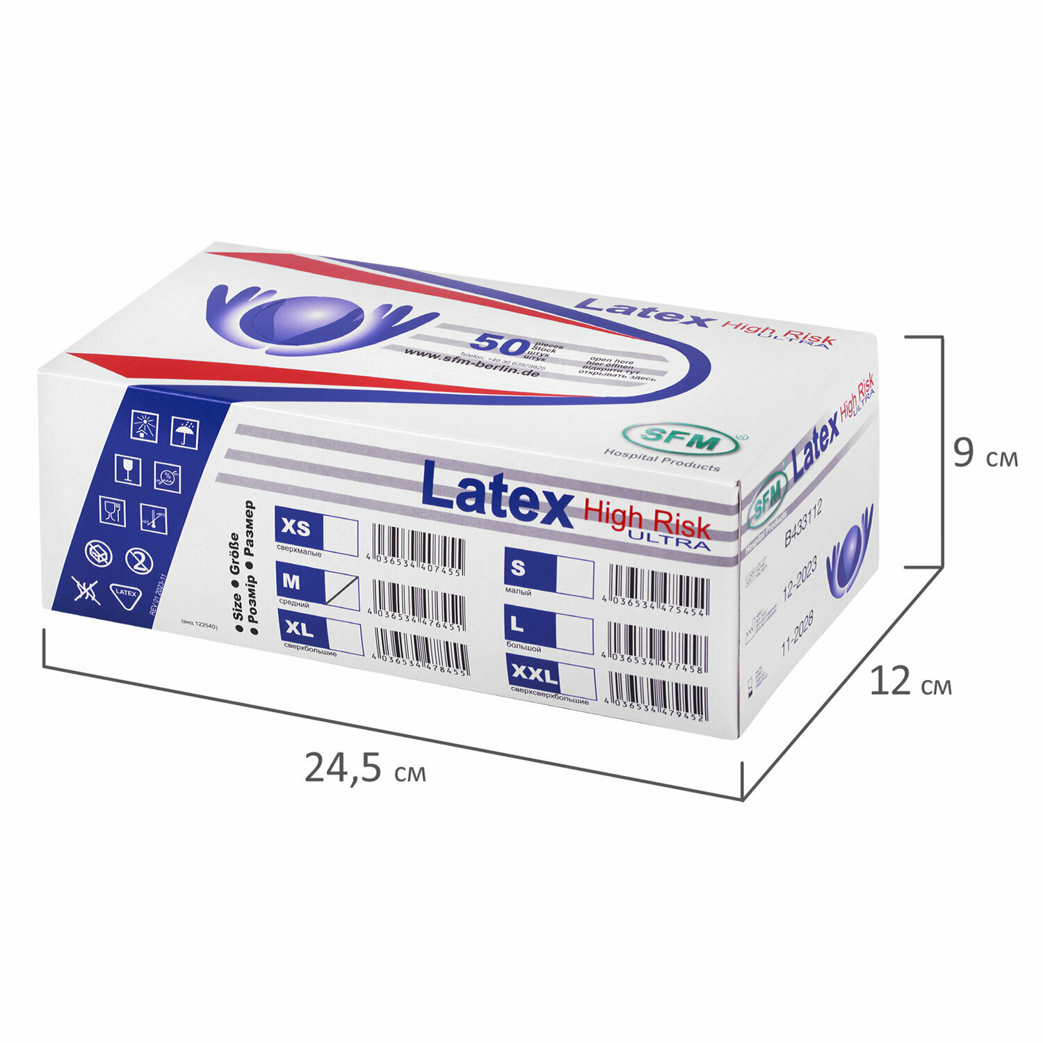 Перчатки латексные SFM смотровые, сверхпрочные, High risk ultra, 25 пар, размер XL