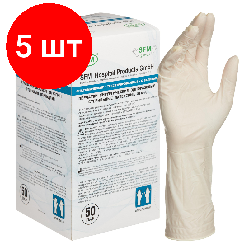 Купить Комплект 5 упаковок, Мед.хирург. перчатки латекс. стерил. опудр. ПАФ SFM (8.0) 50пар/упак