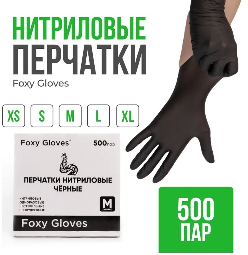 Перчатки маникюрные FOXY-GLOVES нитриловые, одноразовые, смотровые, неопудренные, р-р M, черный, 500 пар.