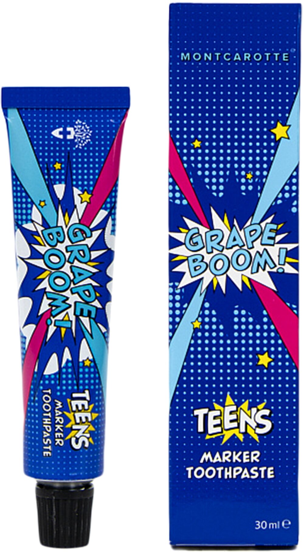 Купить Зубная паста - маркер MontCarotte Grape BOOM, со вкусом винограда, индикатор зубного налета, 2 в 1, обучение чистки зубов, 30 мл, Монткаротт, Италия