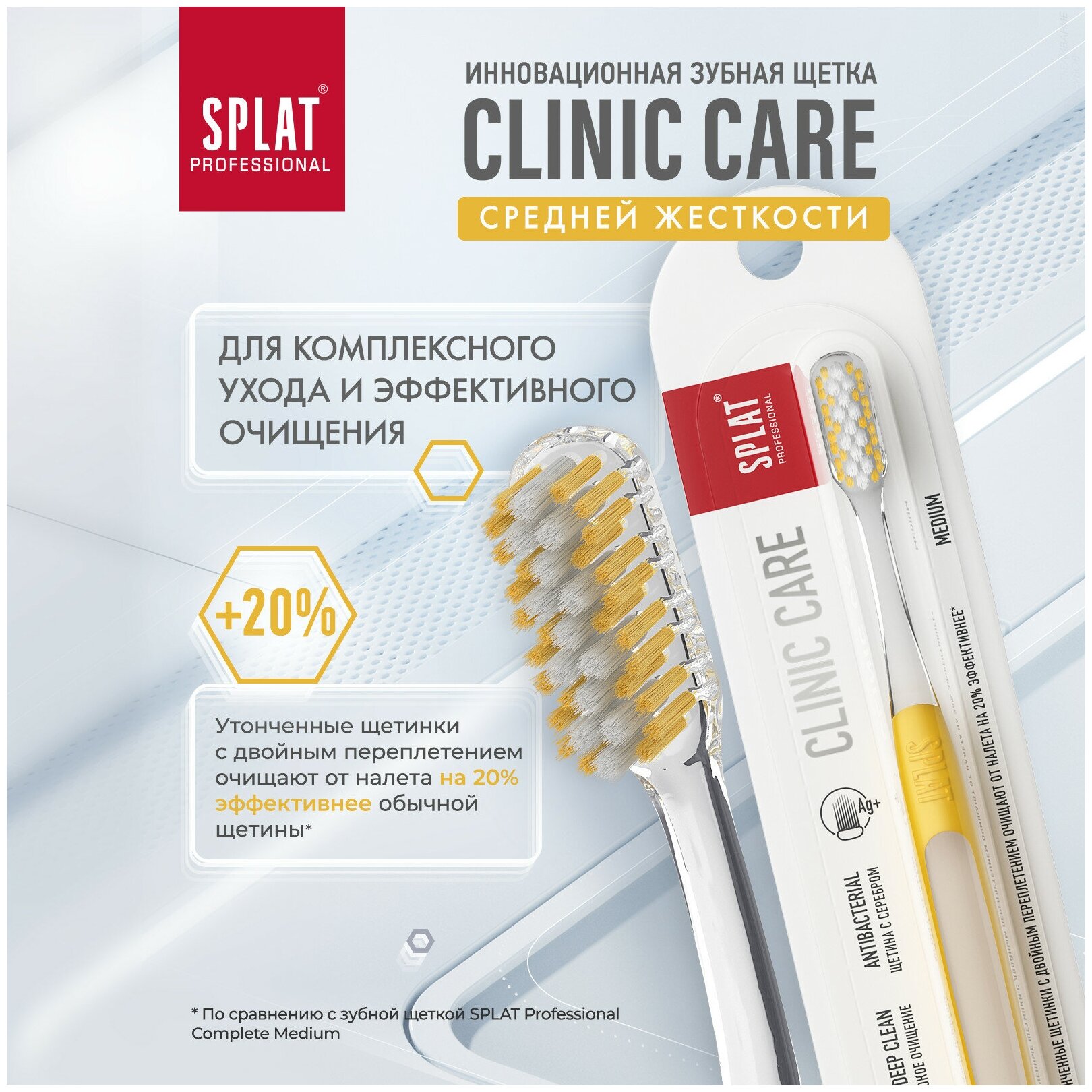 Зубная щетка SPLAT Professional CLINIC CARE сплат профессиональная средней жесткости белого цвета щетка для зубов 1 шт