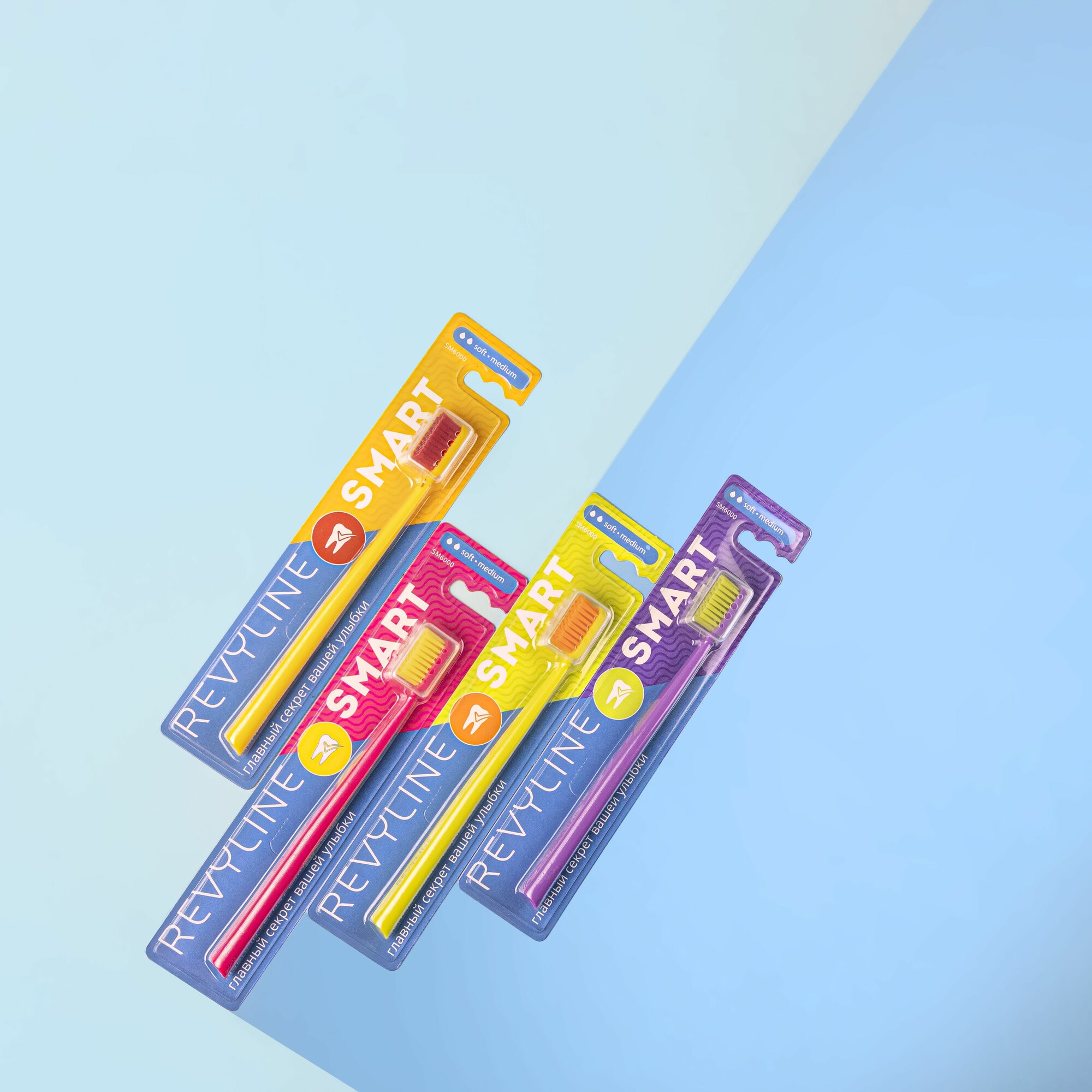 Набор зубных щеток Revyline SM6000, 4 шт, 6000 щетинок, эргономичная форма, яркий дизайн, Ревилайн
