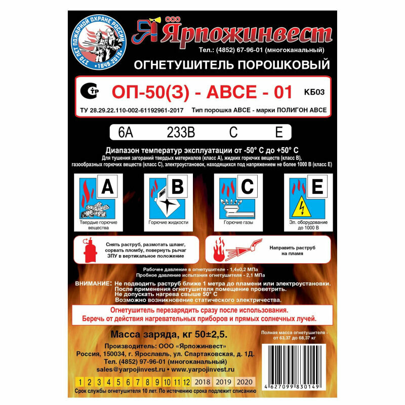 Порошковый огнетушитель Ярпожинвест ОП-50 (з) интересное: