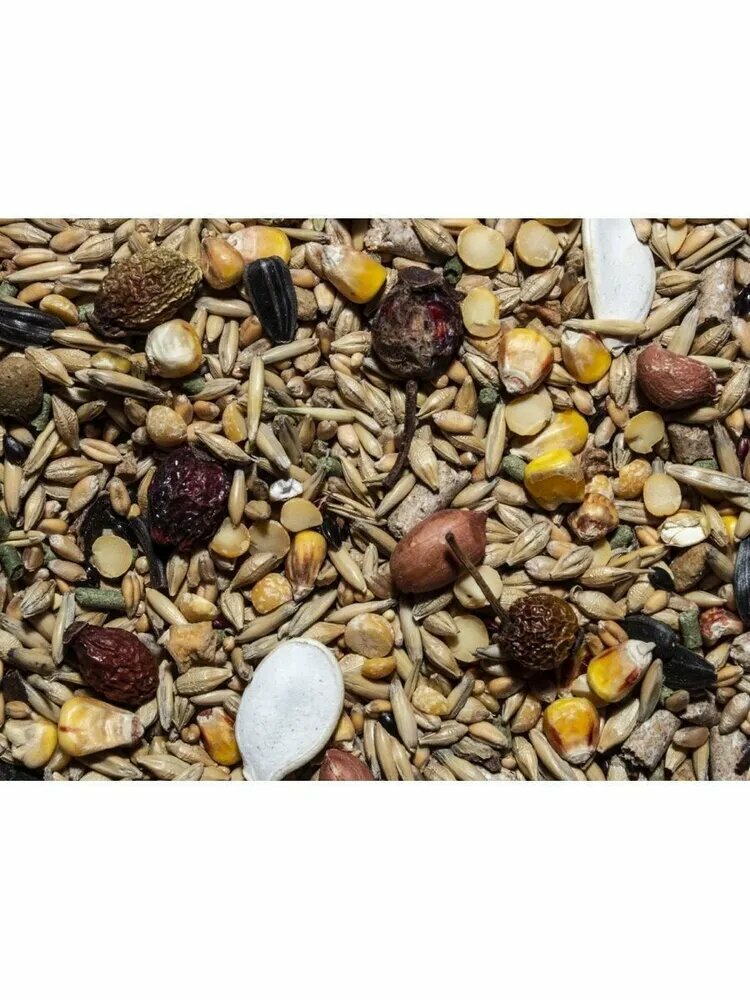 | Состав | Пшеница, пшеница воздушная, ячмень воздушный, зерновые гранулы (т.ч. Юкка Шидигера, пребиотик, Омега-3 и -6), просо желтое, просо красное, хлопья кукурузные, лен, сафлор, сорго, семечка подсолнечника, рожковое дерево, экструдированные гранулы, морковь, арахис, банановые чипсы, ананас сушенный. |