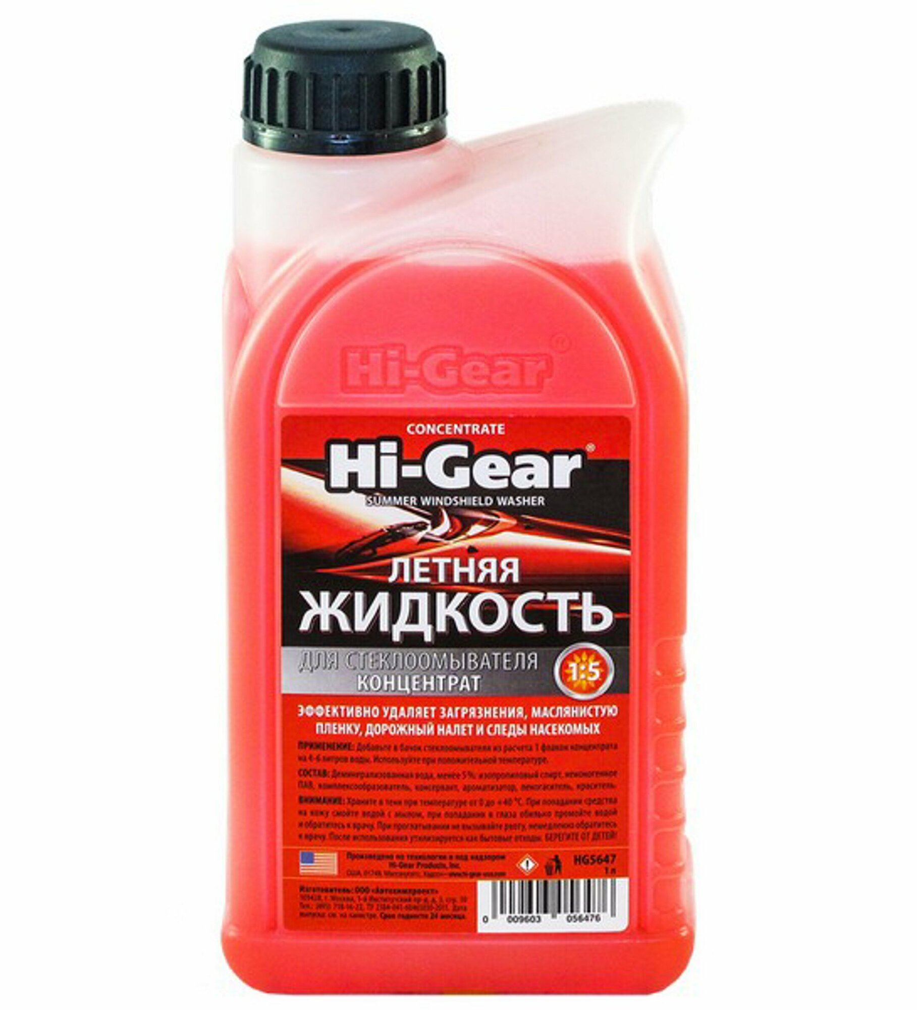 Жидкости HI-GEAR HG5647 Летняя жидкость для омывателя стекла (концентрат) 1л HI-GEAR