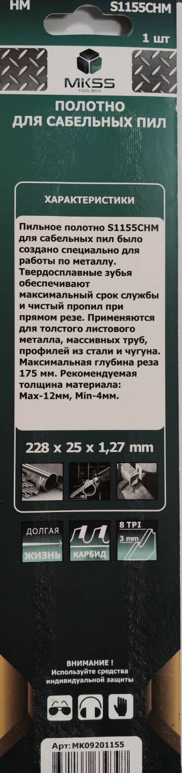 Полотно для сабельной пилы по металлу S1155CHM, пилки для сабельной пилы 228 мм/3 мм,, MKSS интересное: