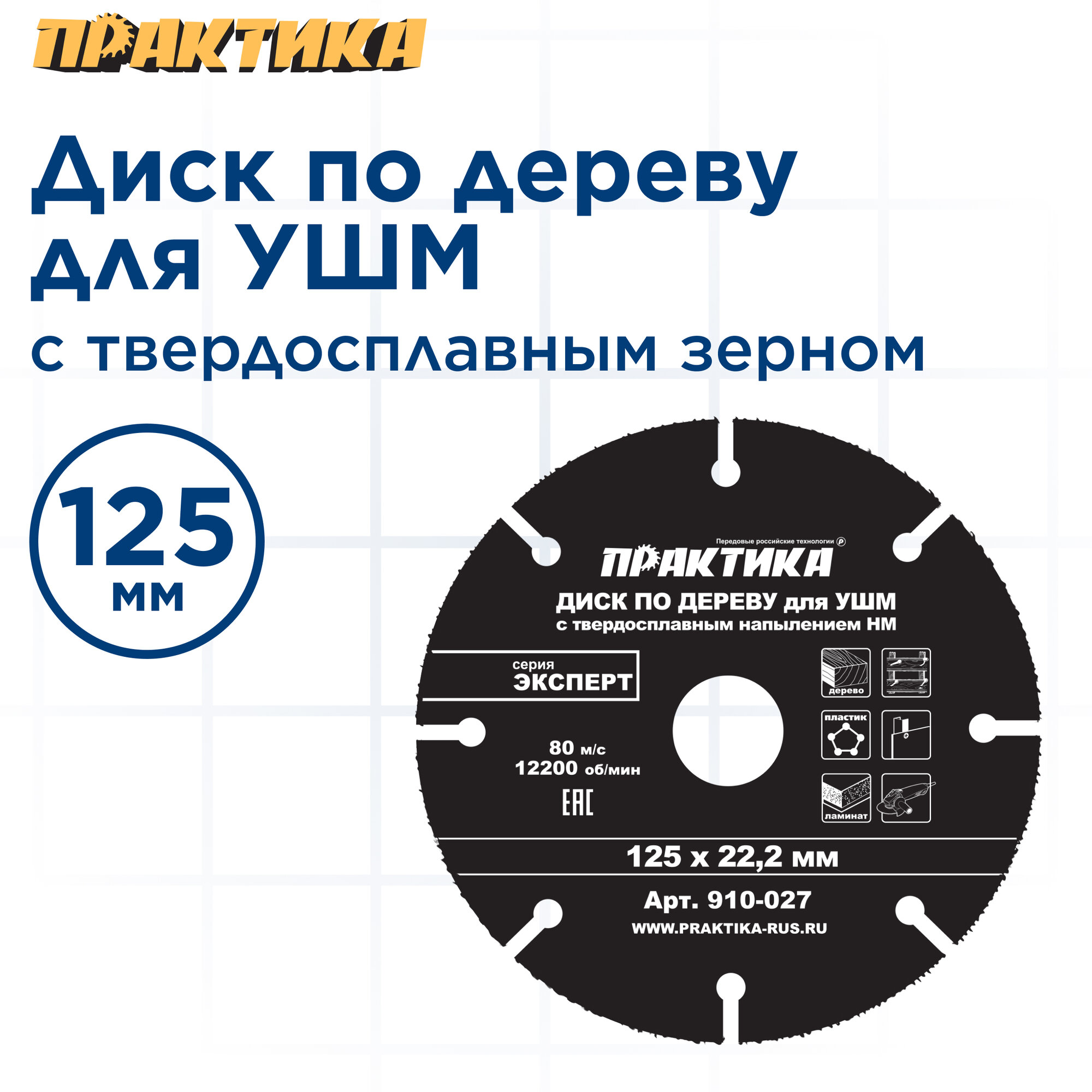 Ниже Вы можете прочитать отзывы на Диск по дереву с твердосплавным зерном ПРАКТИКА 125 х 22 мм для УШМ (910-027), ознакомится с подробными характеристиками, посмотреть интересные обзоры и фотографии на Диск по дереву с твердосплавным зерном ПРАКТИКА 125 х 22 мм для УШМ (910-027).