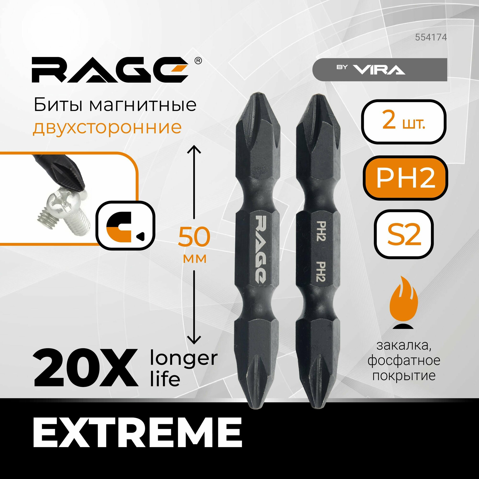 Купить RAGE by VIRA Биты двухсторонние S2 Ph2xPh2x50x50 мм 2 шт 554174