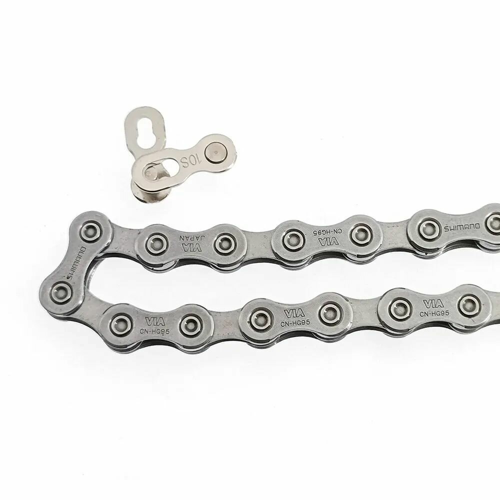 | Дополнительная информация | Цепь Shimano HG95 для 10-скоростных трансмиссий, - новая уникальная направленная цепь от шимано, при установке которой необходимо учитывать направление. Ассиметричная конструкция обеспечивает лучший контакт со звёздами, делая переключение еще более плавным даже под нагрузкой. Сверхузкая конструкция для четкого переключения и бесшумной работы. Поддерживает технологию DYNA-SYS. Имеет специальную обработку против корррозии - требует еще меньше обслуживания! Тезхнология SIL-TEC для сверхнизкого трения. Совместима с 10-скоростными кассетами любых производителей. |