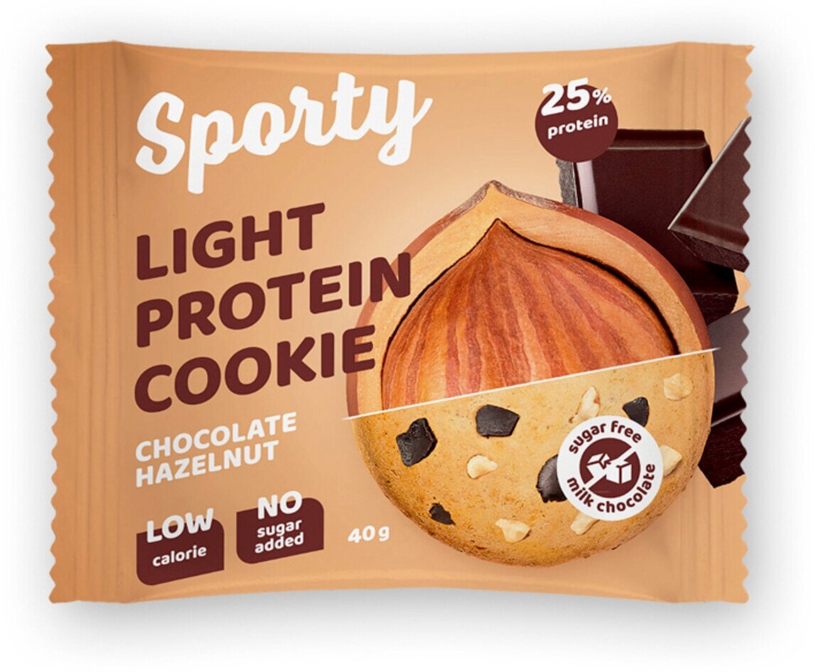 Купить Печенье SPORTY Protein Light без сахара "Шоколад-Фундук", 12шт*40г, SPORTY
