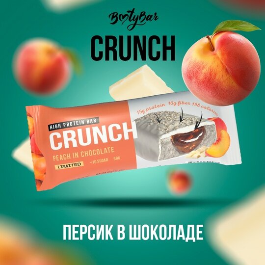 СохранитьПротеиновый батончик Crunch 4 штуки 60 гр (BootyBar) Персик в шоколаде интересное: