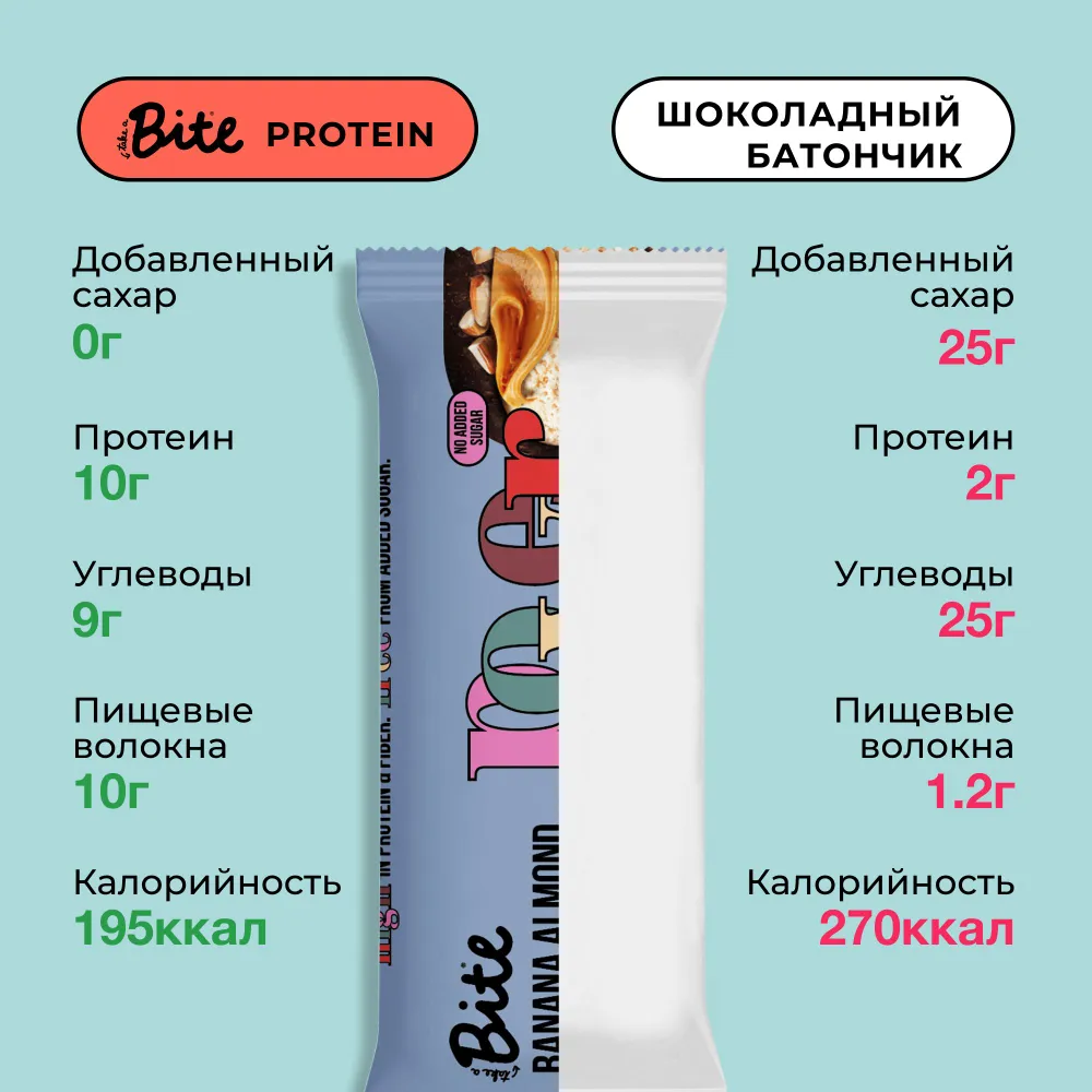 Протеиновые батончики без сахара Take a Bite, Банан-Миндаль, 6 шт по 50 гр