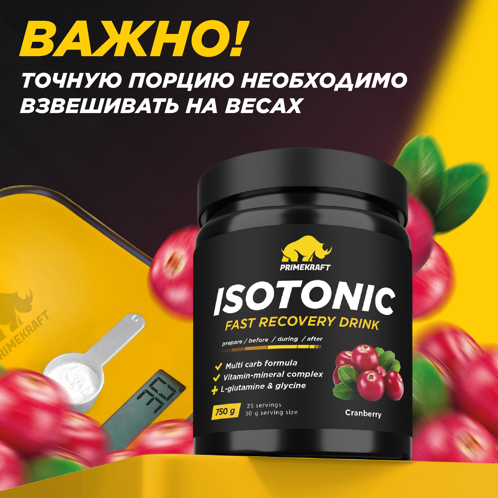Изотоник PRIME KRAFT Isotonic, Клюква, 750г / 25 порций