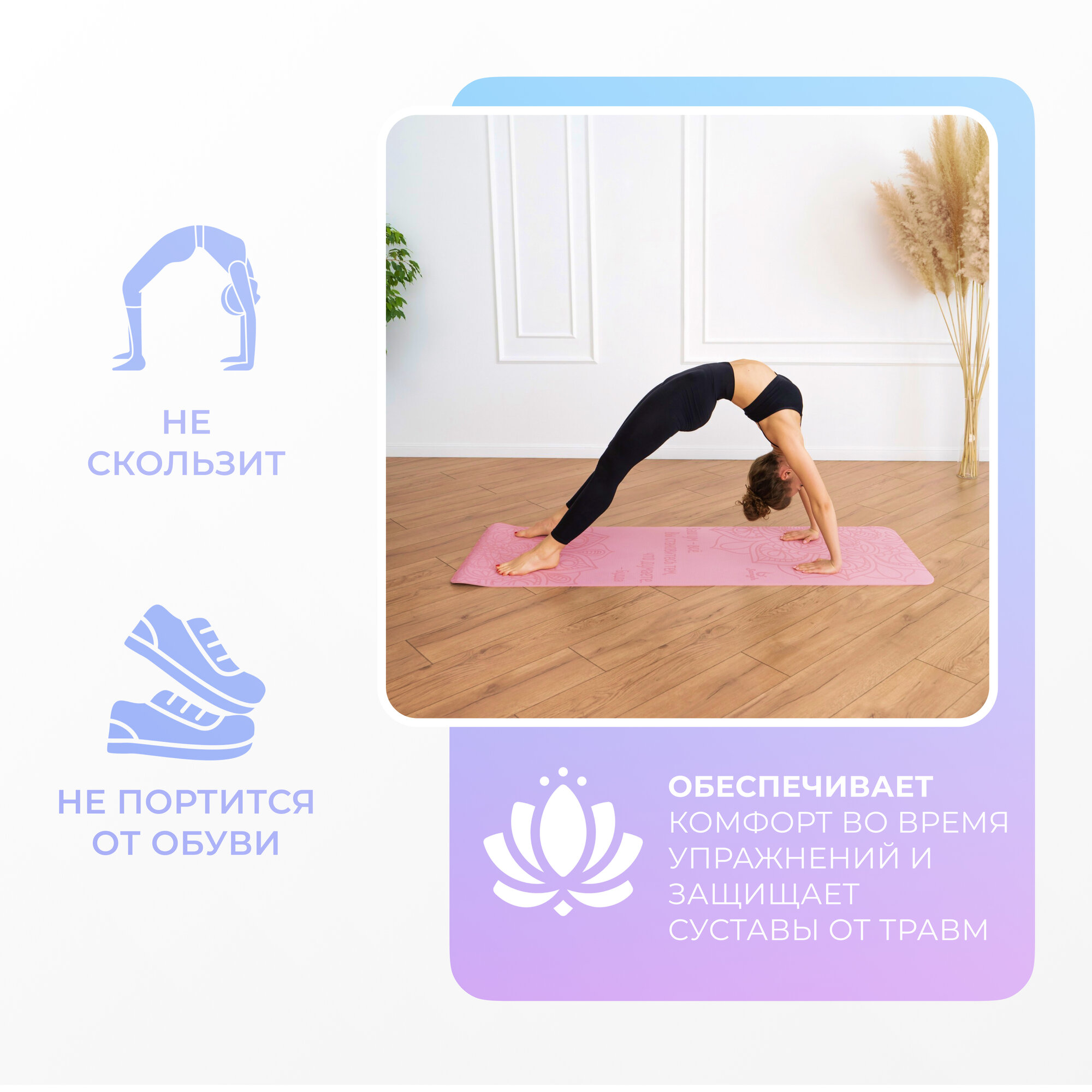 | Особенности | двухсторонний / нескользящий / складной / экологичный |