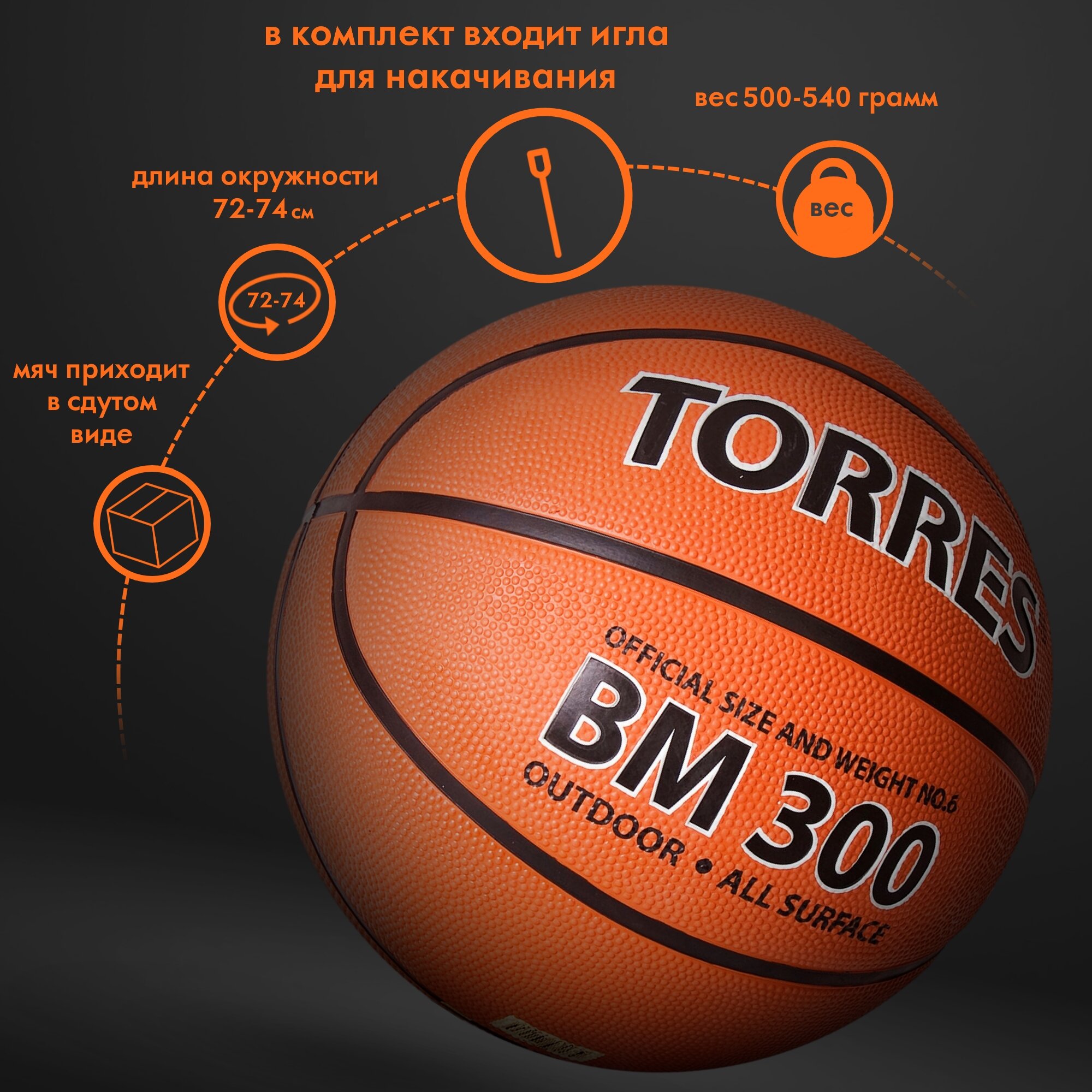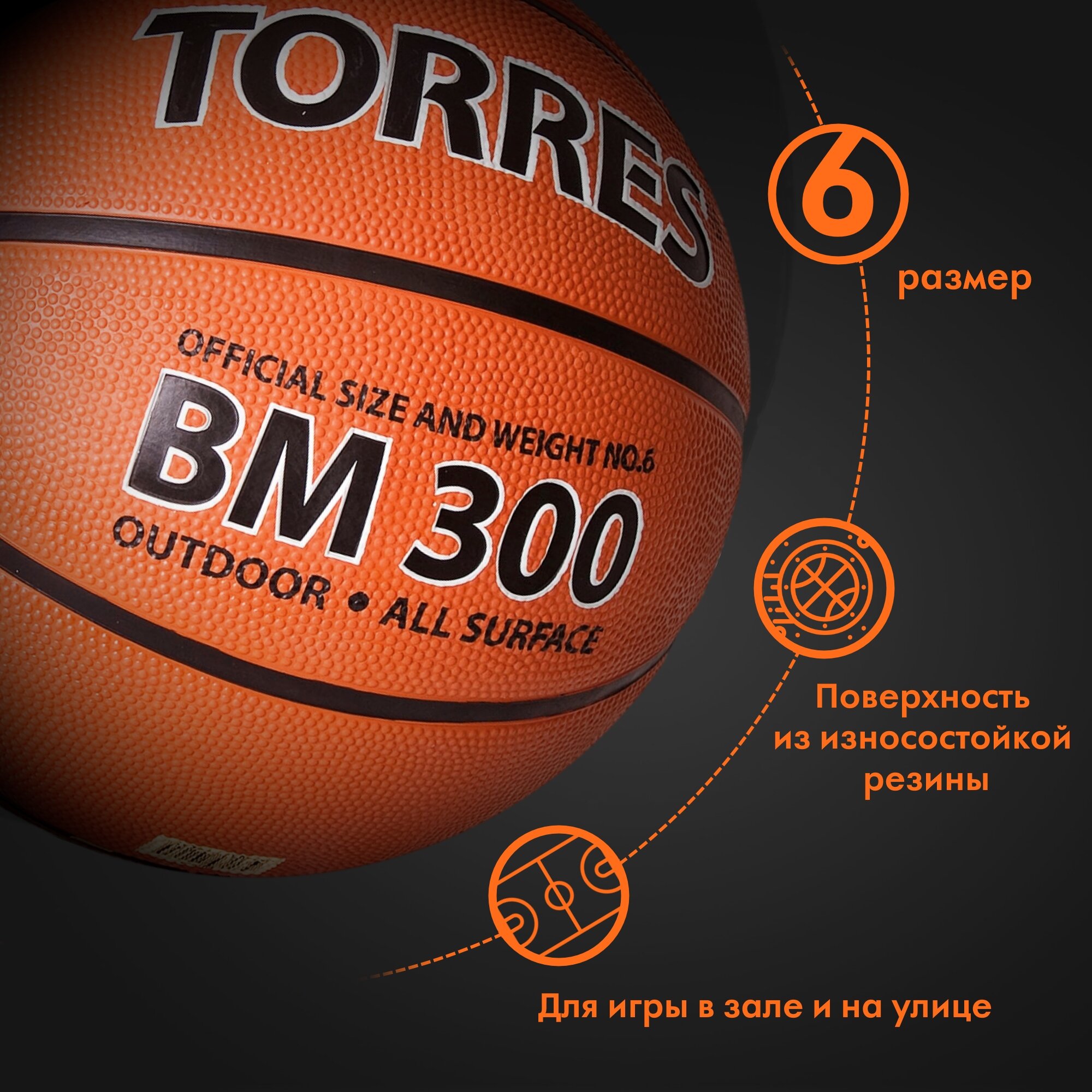 Мяч баскетбольный TORRES BM300 B02016, размер 6 интересное: