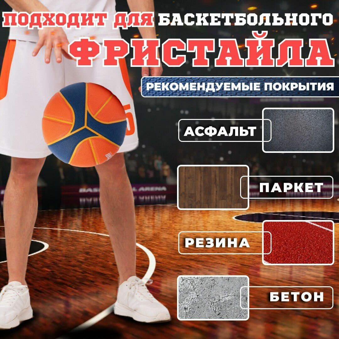 Мяч баскетбольный профессиональный тренировочный, размер 7, оранжевый и синий интересное: