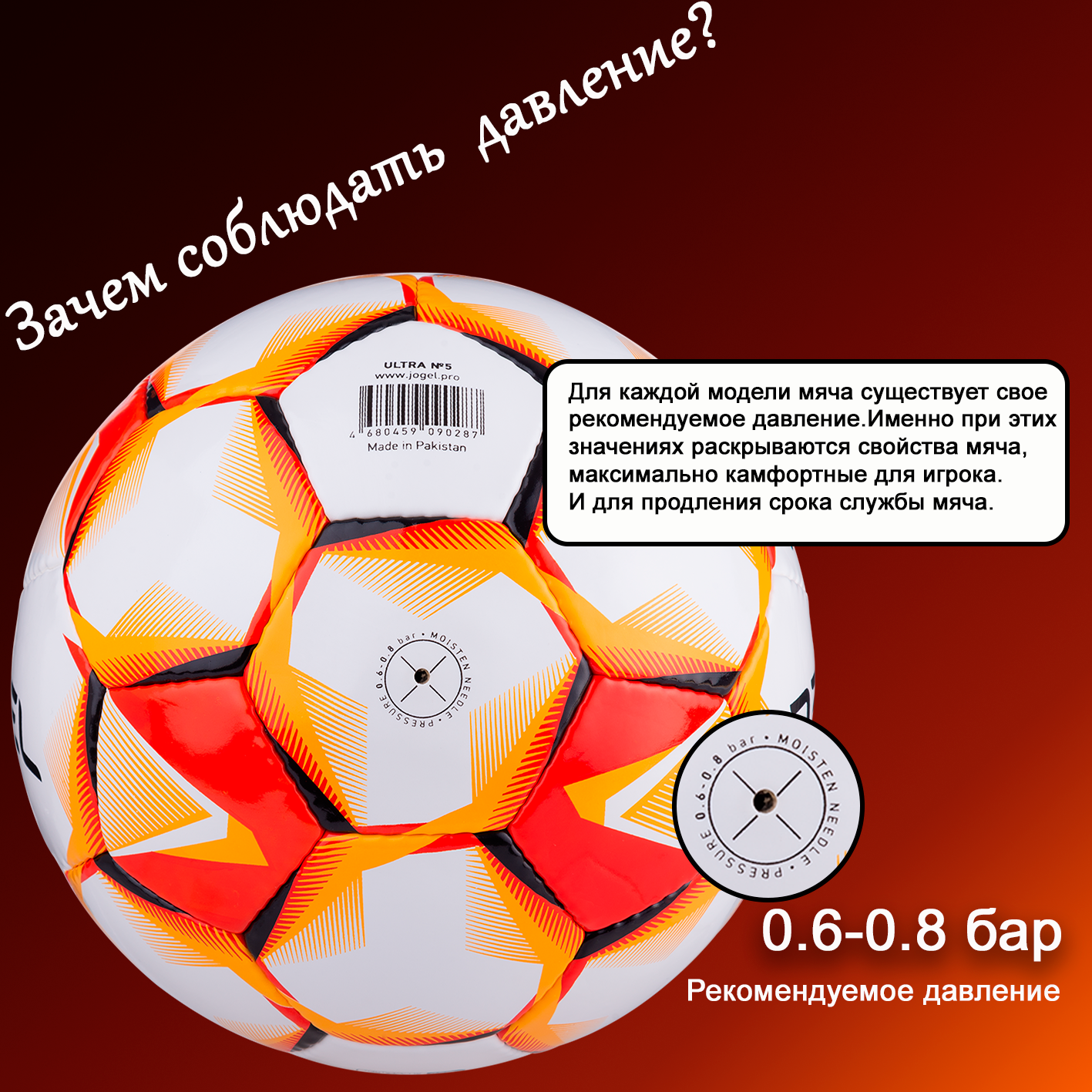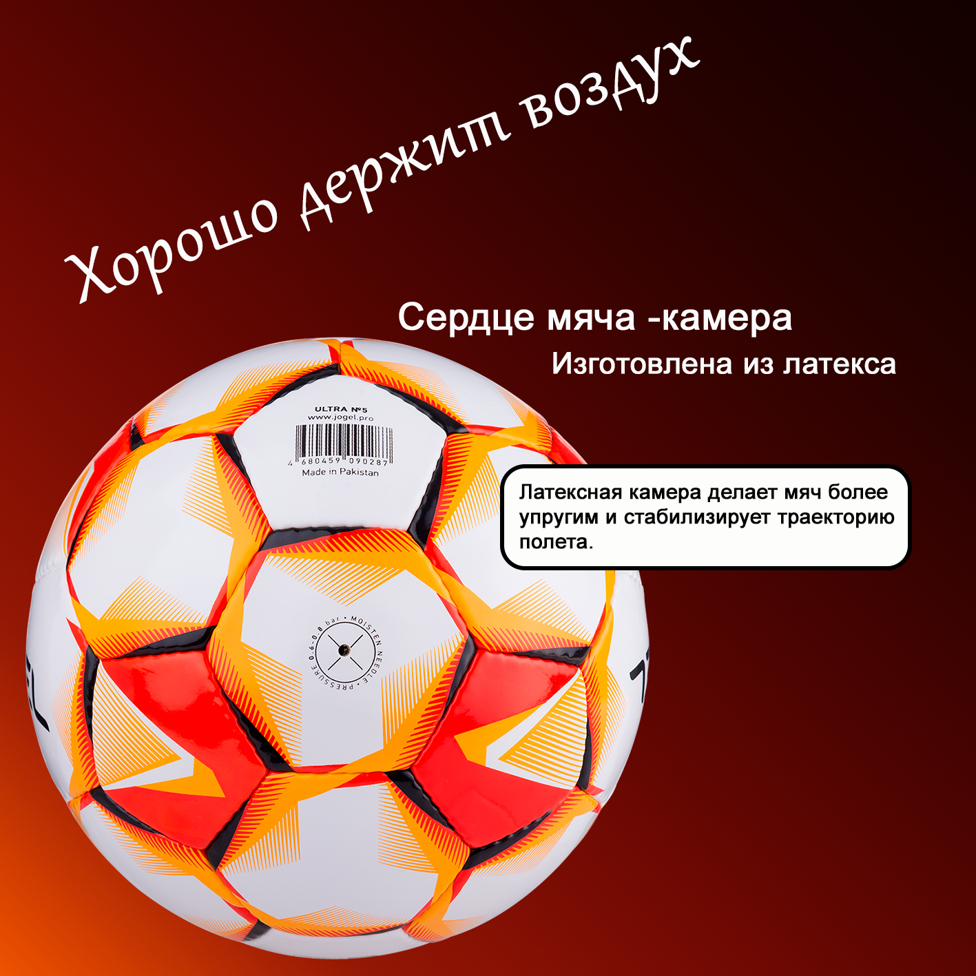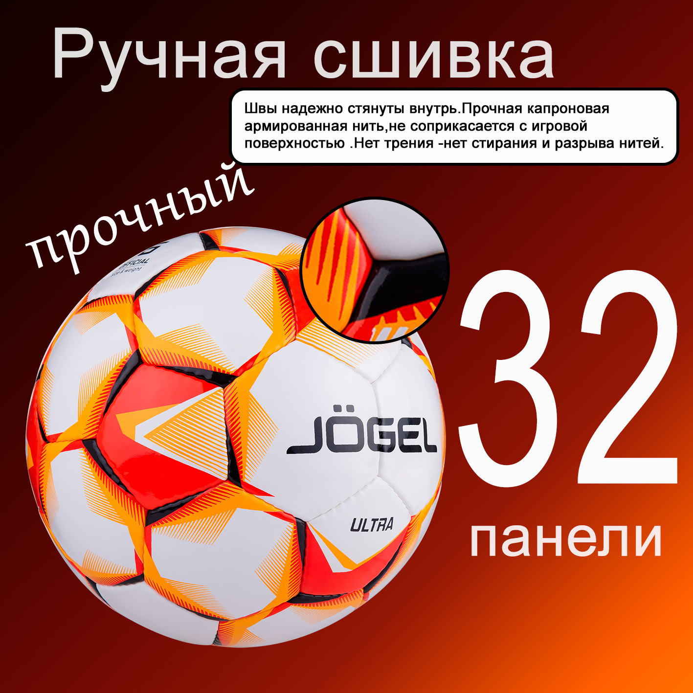Мяч футбольный Jogel Ultra тренировочный, размер 5, цвет белый/оранжевый/красный