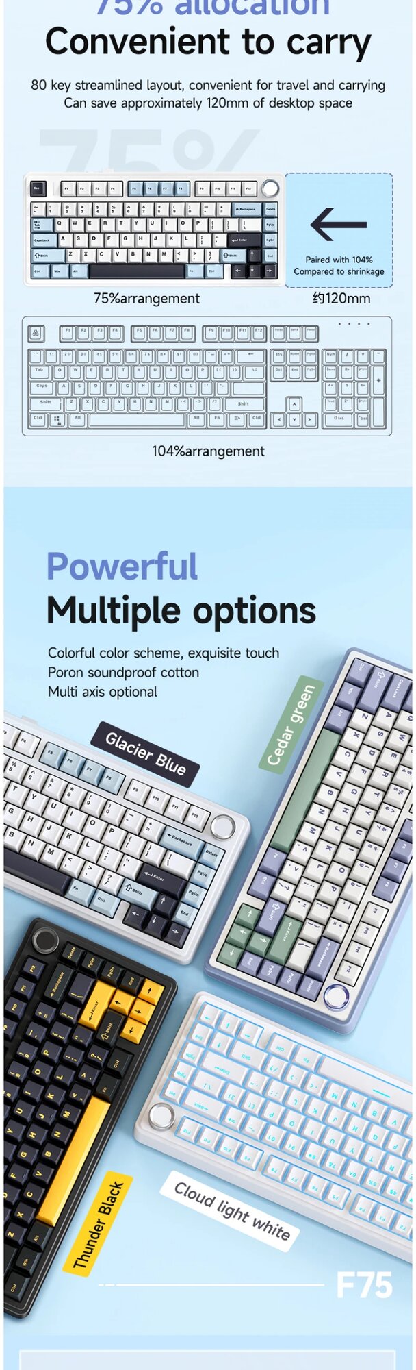 Механическая игровая клавиатура AULA F75, Glacier Blue, LEOBOG Ice Vein Axis