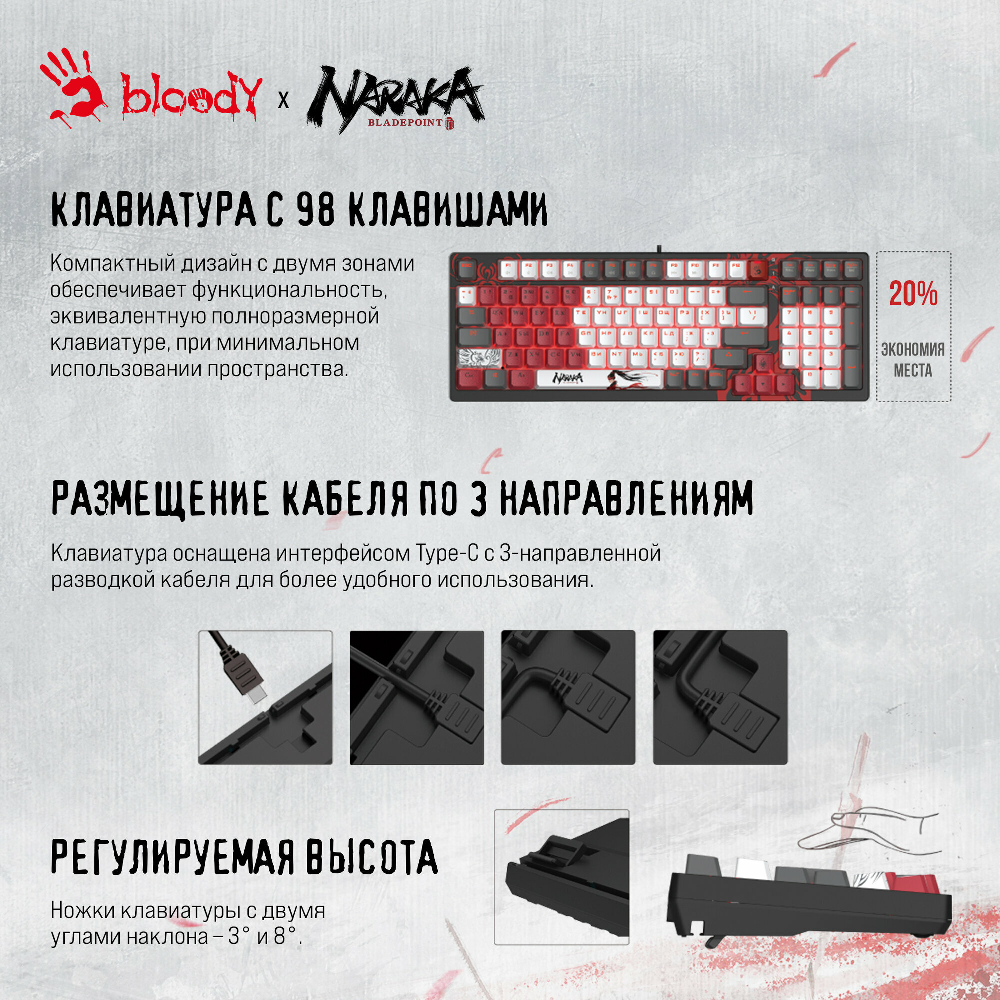 СохранитьКлавиатура A4Tech Bloody S98 Naraka, механическая, красный/белый/черный, USB, RGB интересное: