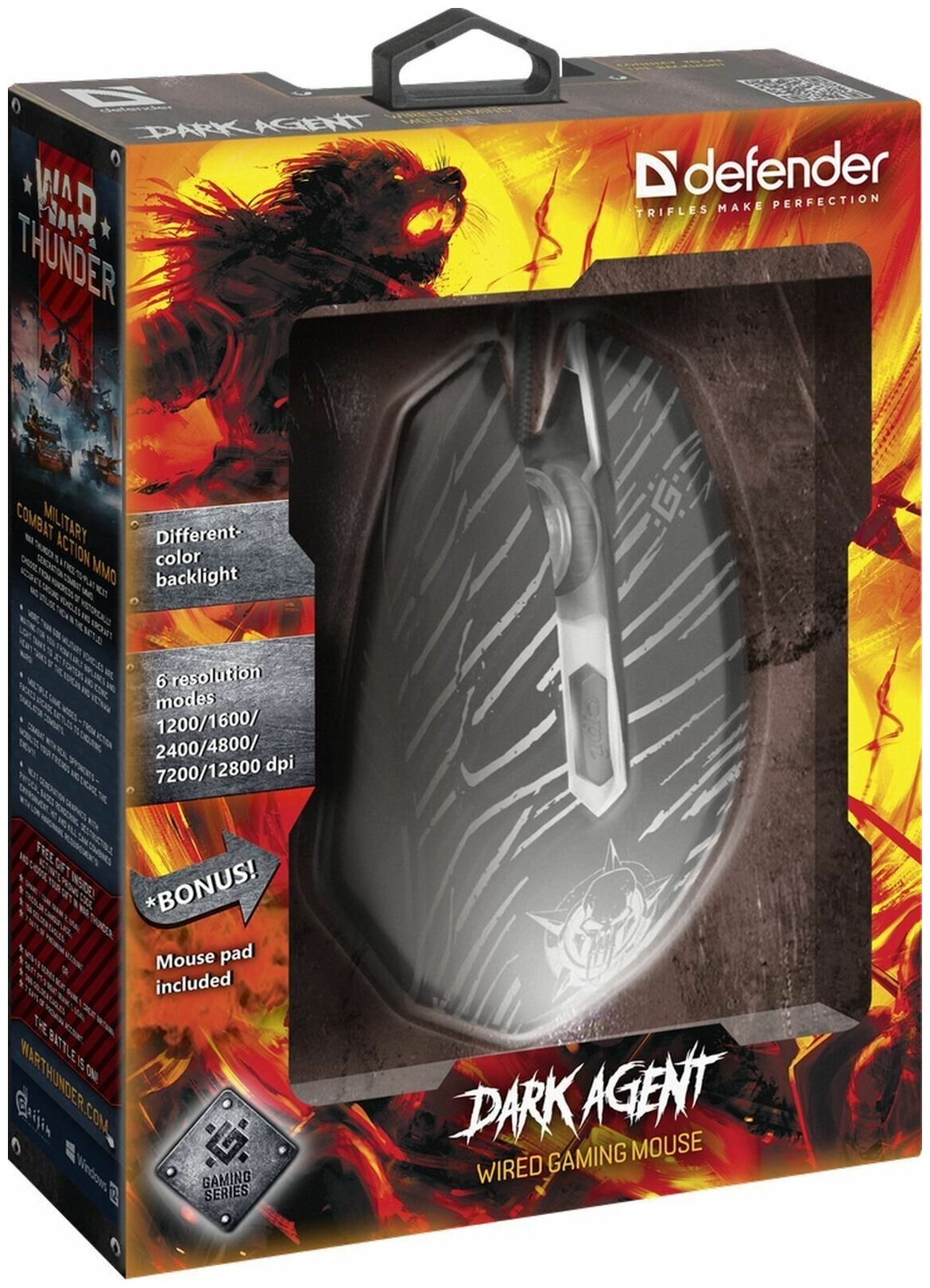 Игровая мышка для компьютера Defender Dark Agent оптика 6 кнопок 12800 dpi