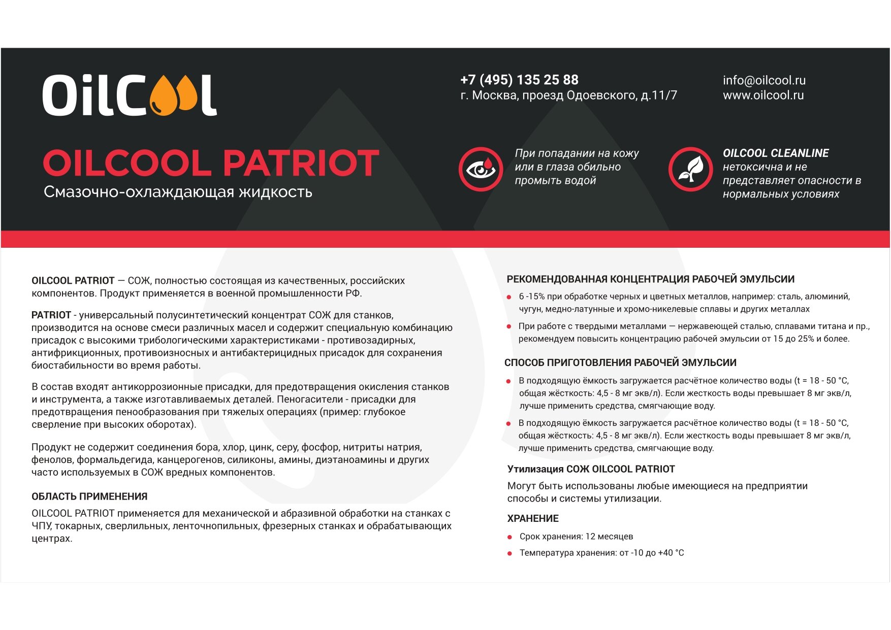 Смазочно-охлаждающая жидкость Концентрат СОЖ Oilcool PATRIOT, 20л интересное: