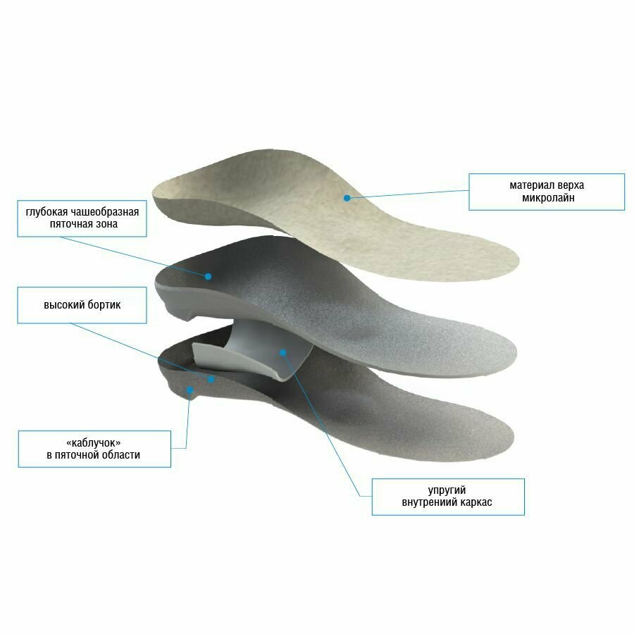 Ортопедические стельки с высокими бортиками и пяточным стабилизатором Арт.77 "бейс", размер 42