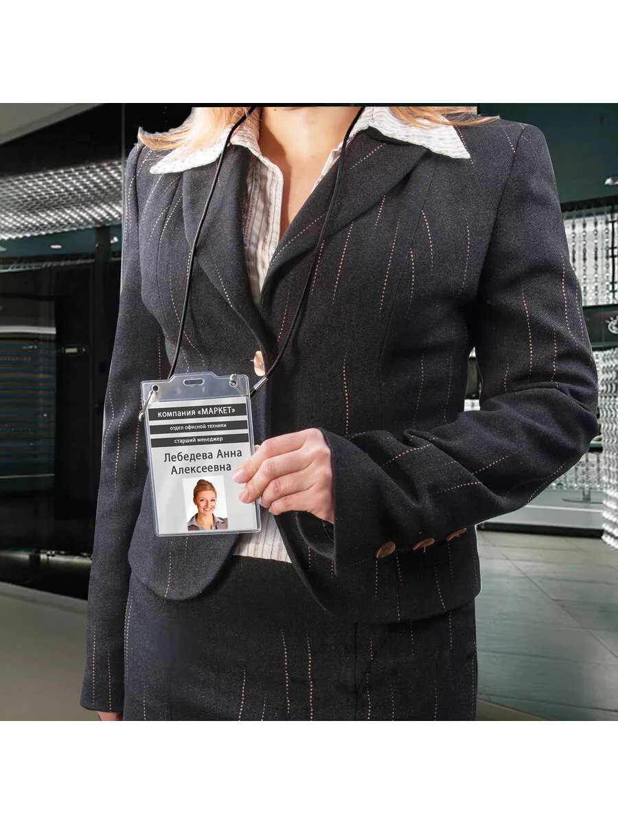 СохранитьБейдж вертикальный большой (120х90 мм), на черном шнурке 45 см, 2 карабина, BRAUBERG, 235718, 5шт в компл. интересное: