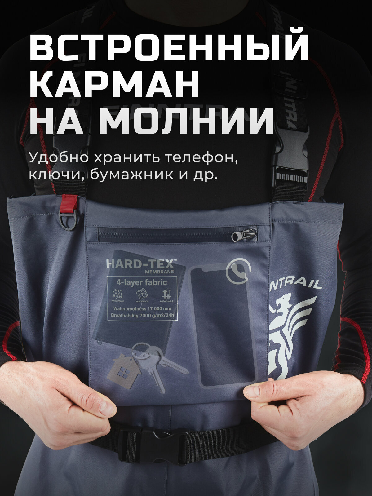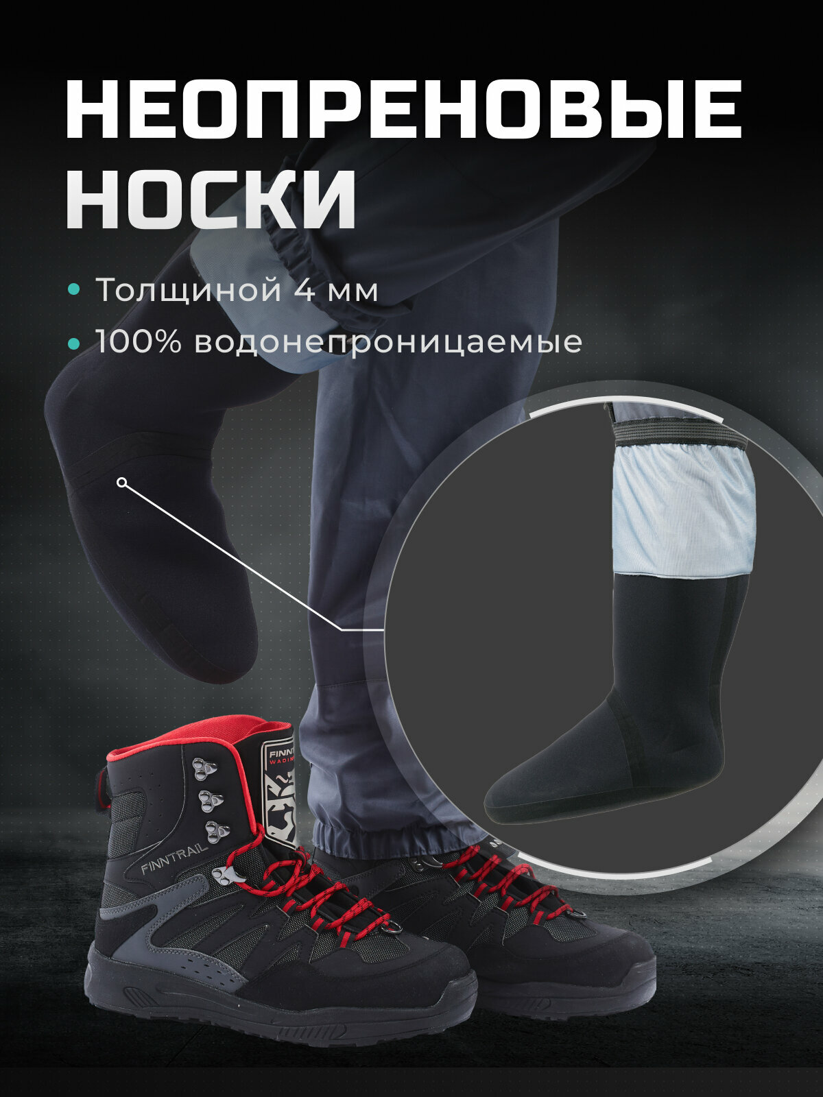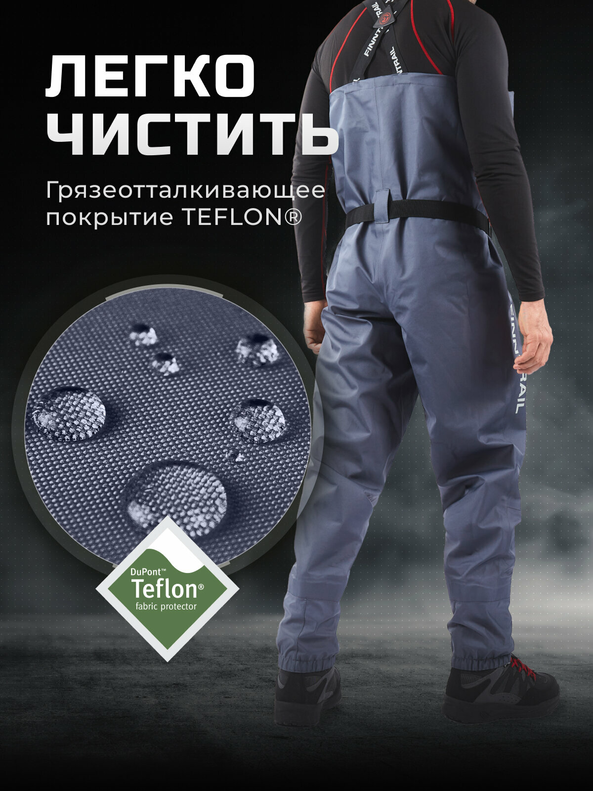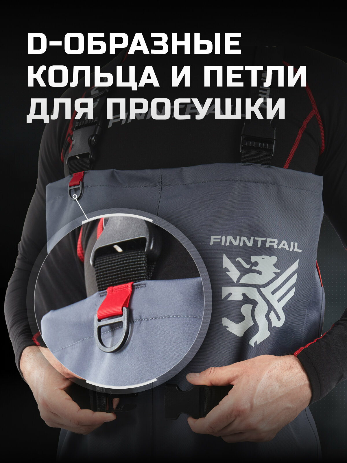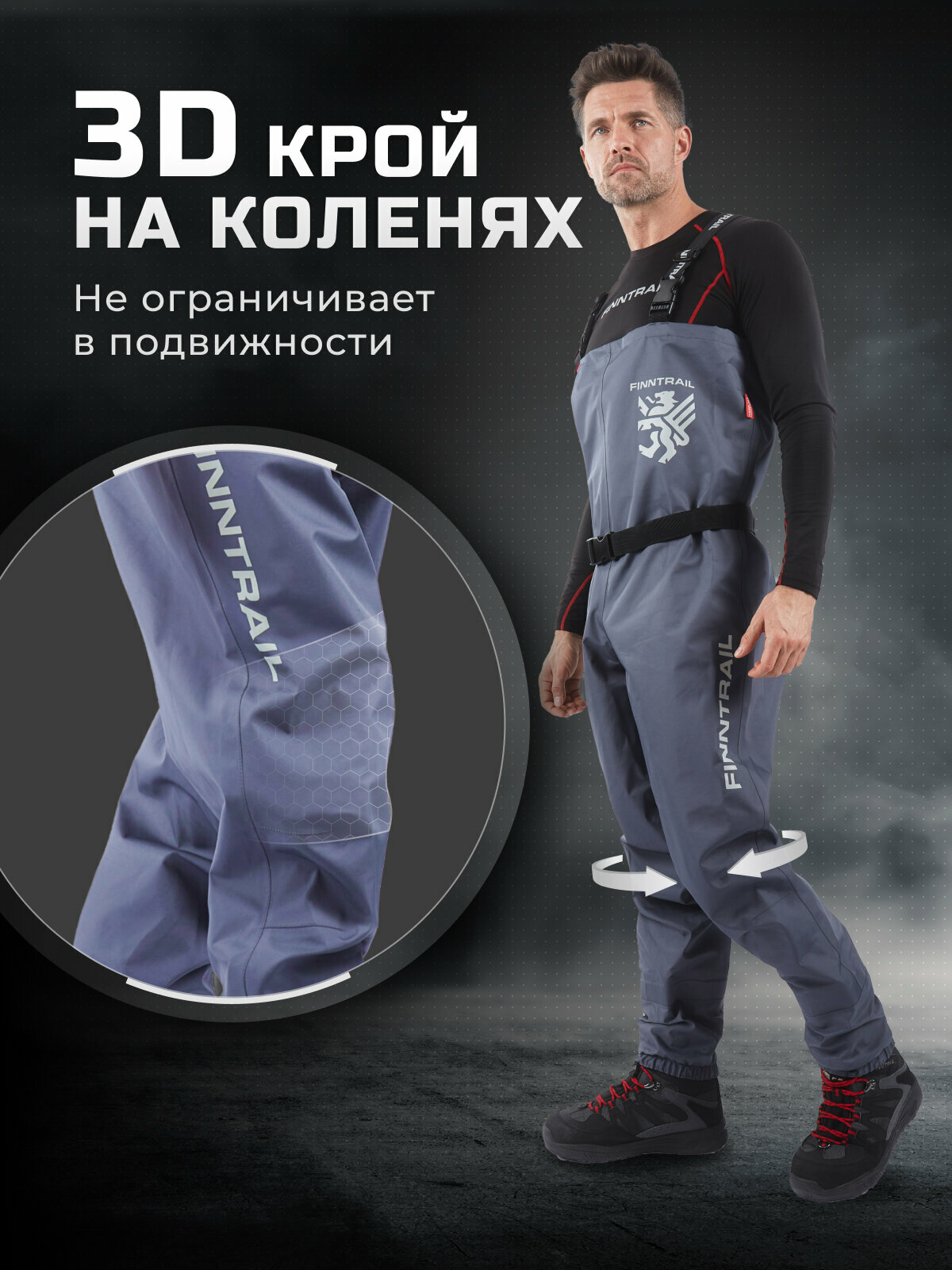Вейдерсы FINNTRAIL TIMBER 1538 мембранные 4 слоя, носки неопрен 4 мм, для рыбалки и квадроциклов (серый, XL)