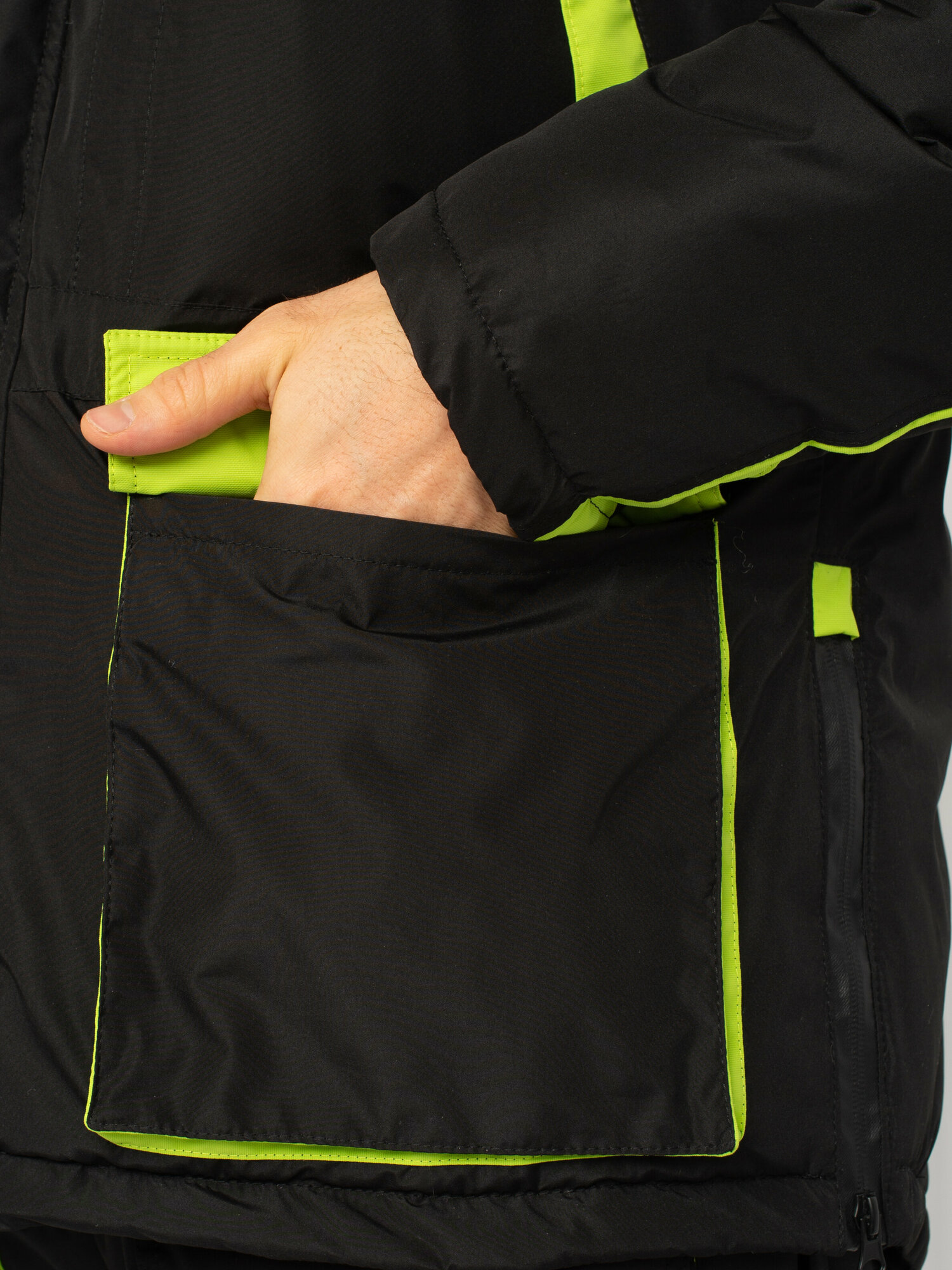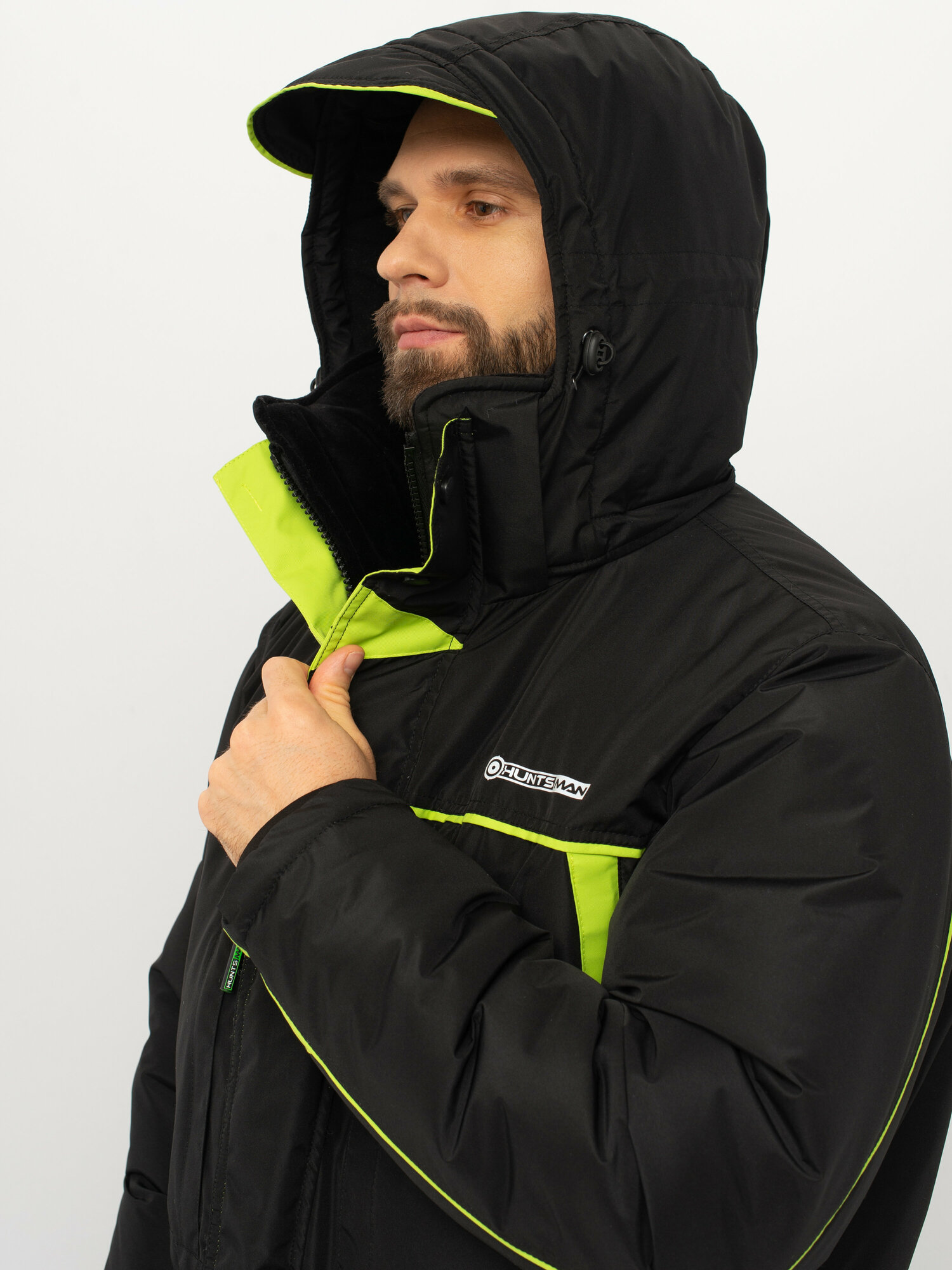 Костюм тактический зимний мужской Huntsman Elbrus для охоты, рыбалки, ткань Hit Membrane, цвет черный/лайм (р.48-50/182-188)