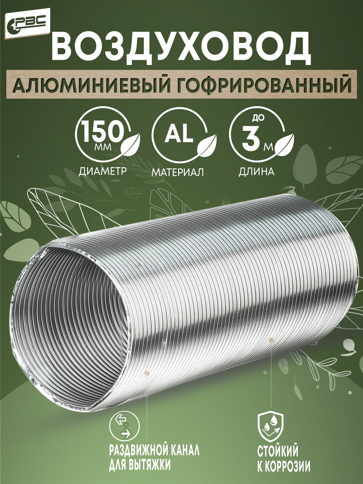 РВС Канал алюминиевый гофрированный d 150, длина 1,5 м