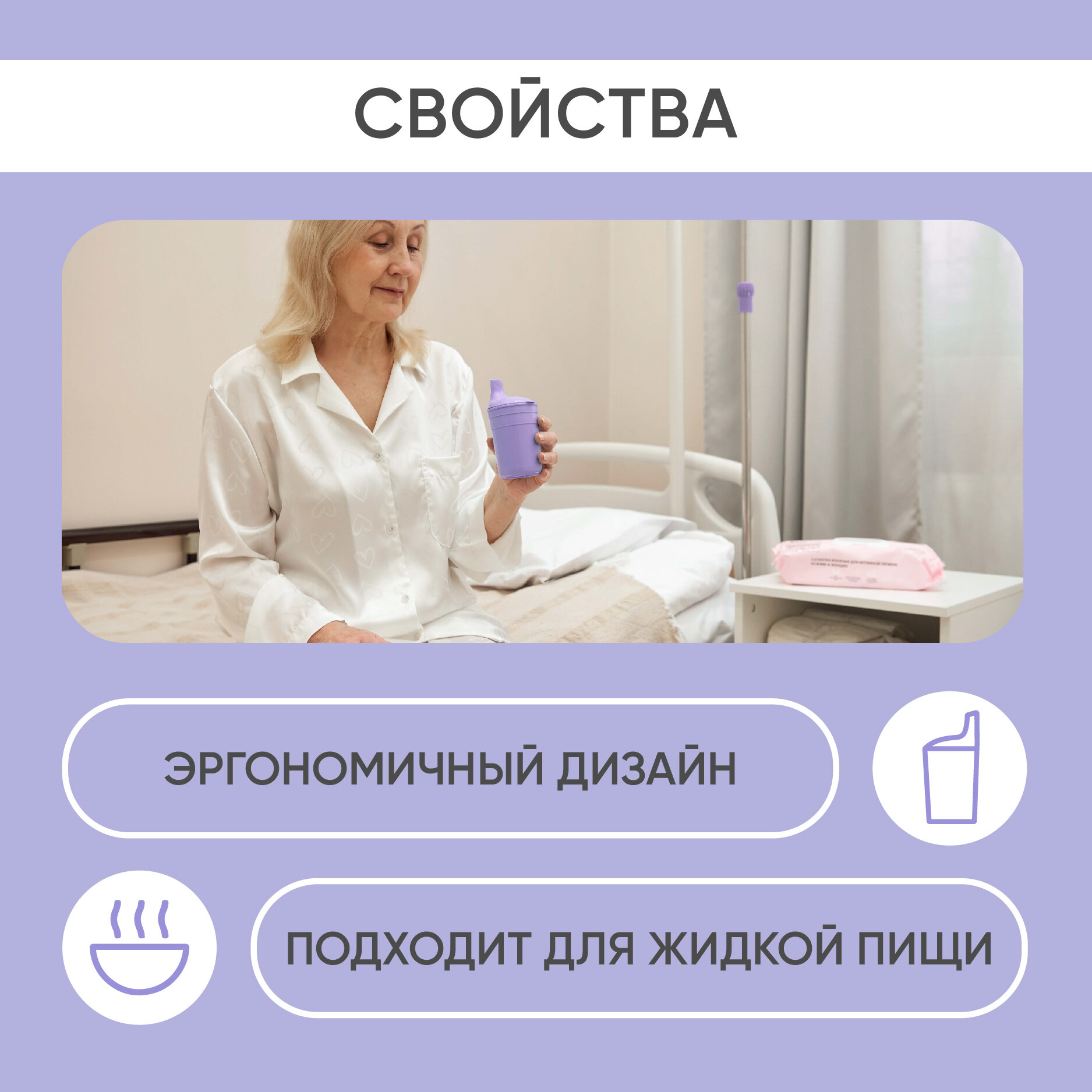 Купить Поильник медицинский Стакан BESIDE 220 мл с твердым носиком крышкой для взрослых лежачих больных, фиолетовый
