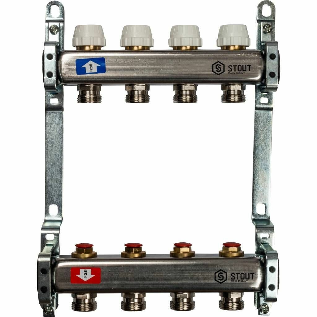 Купить STOUT Коллектор для отопления на 4 выхода без расходомеров из нержавеющей стали SMS 0922 000004