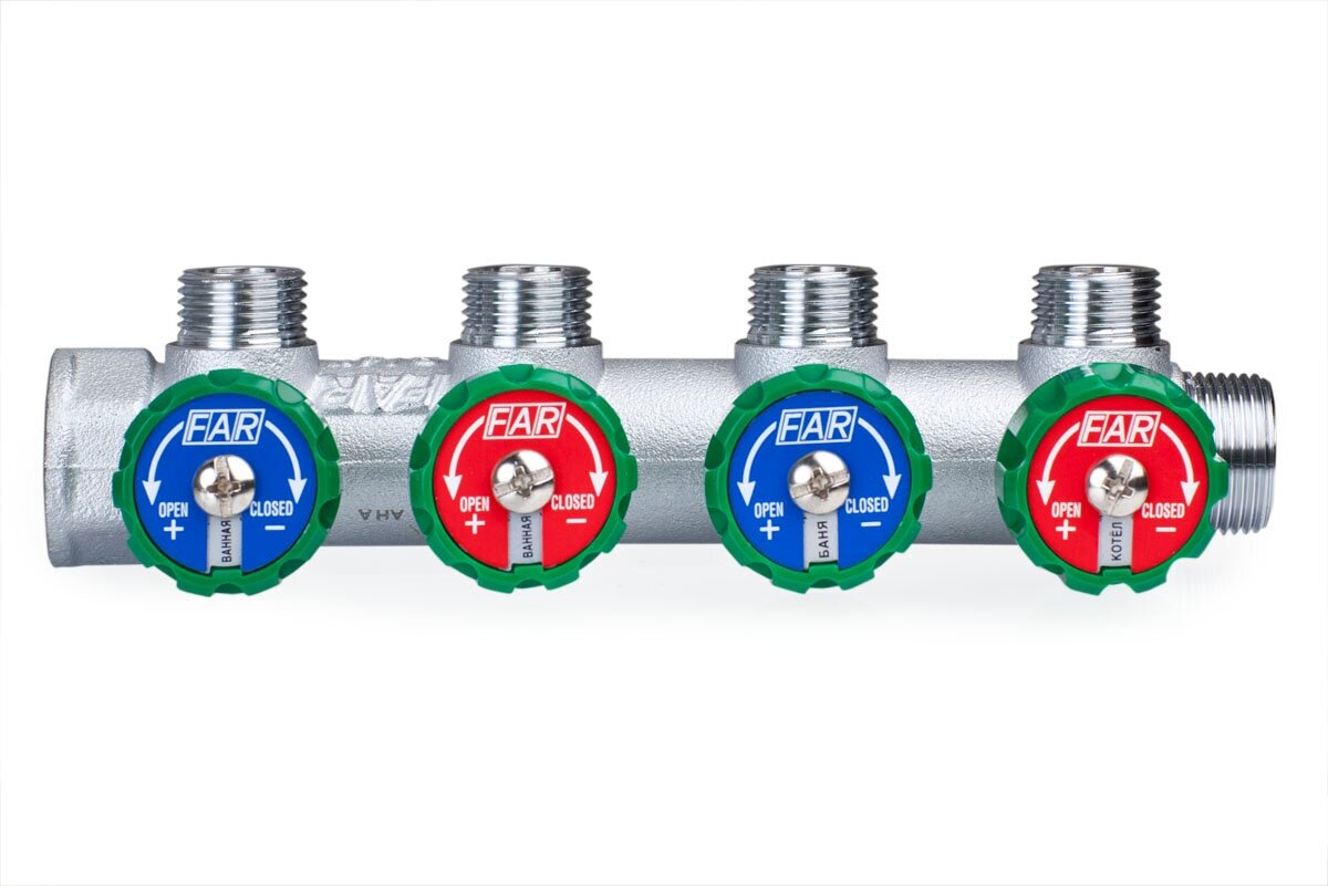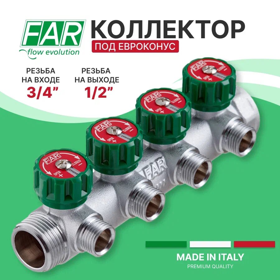 Купить Коллектор регулирующий FAR Multifar 3/4" с 4 отводами 1/2" евроконус