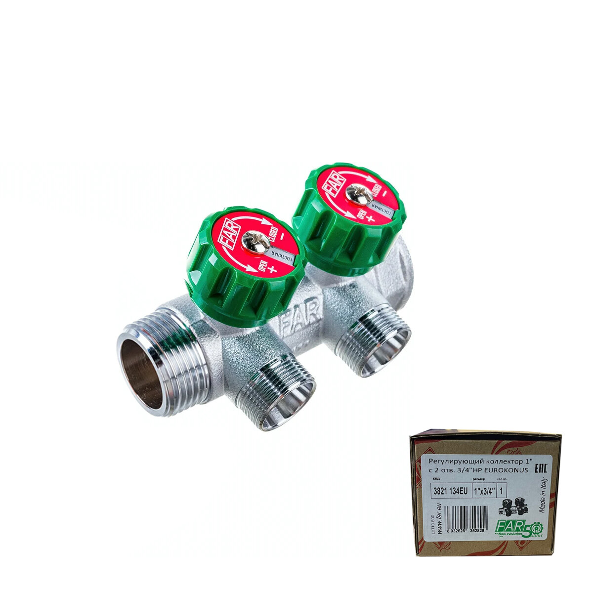 Купить Коллектор лат клап рег 1" м/р 2в 3/4" ЕК н/р 45мм, FAR FK 3821 134 (1 шт.)