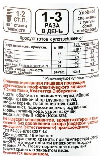 Сибирская клетчатка тонкая талия 170 г 5665731 интересное: