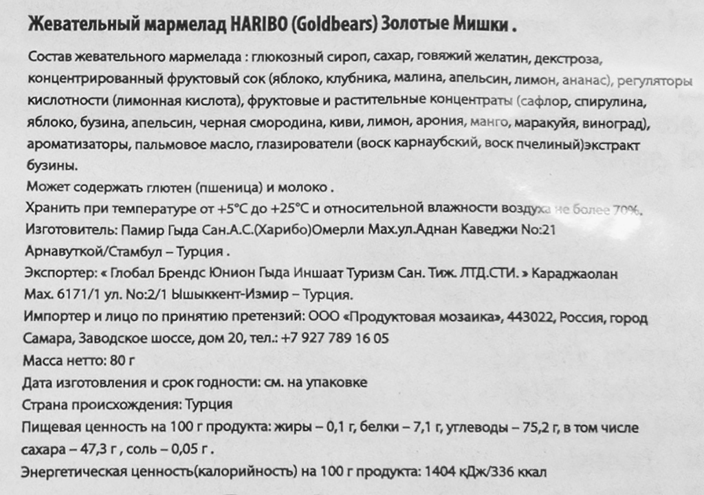 | Бренд | Haribo |