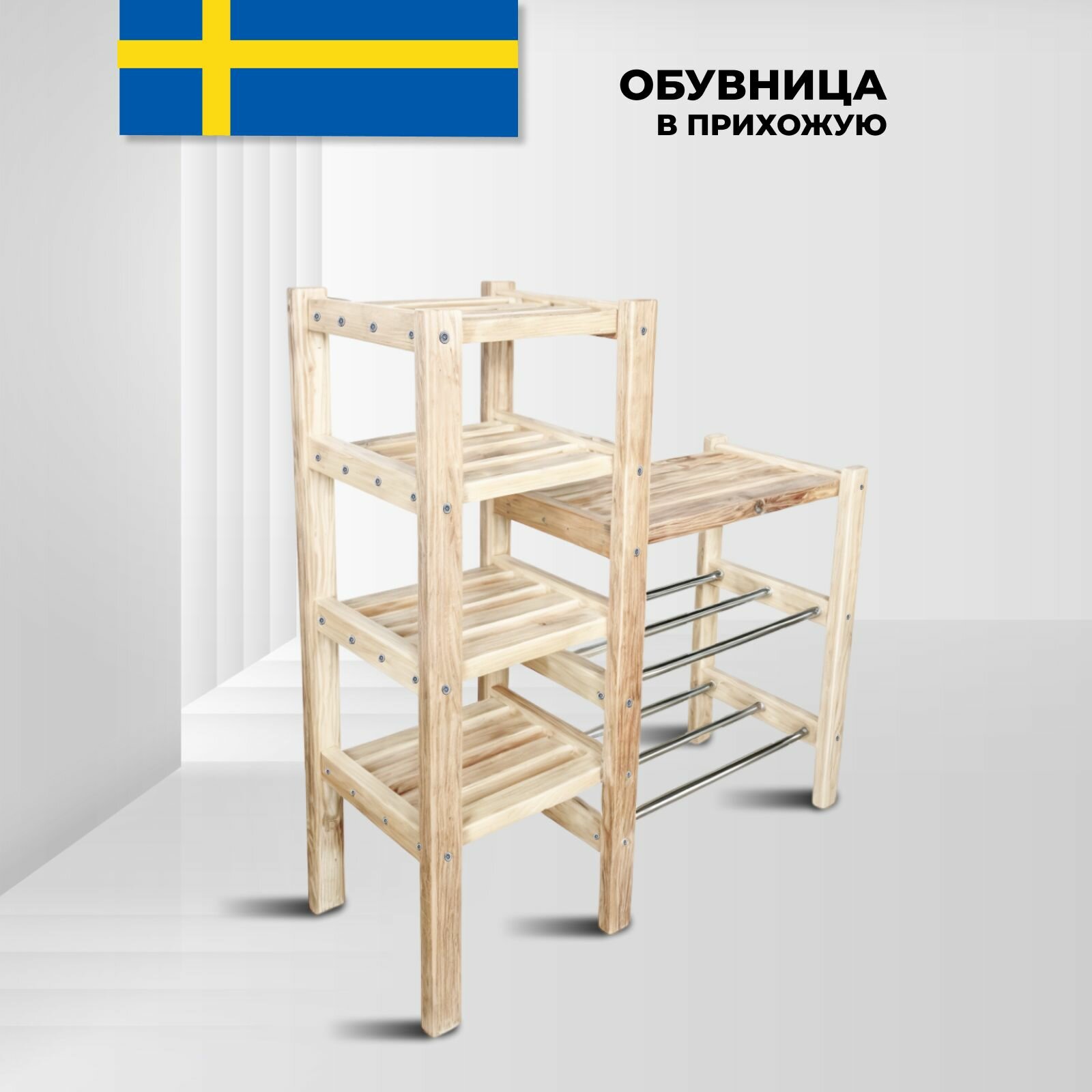 Обувница деревянная, этажерка для обуви, полка подставка для прихожей 79х44х32см, заменитель Чусиг икеа