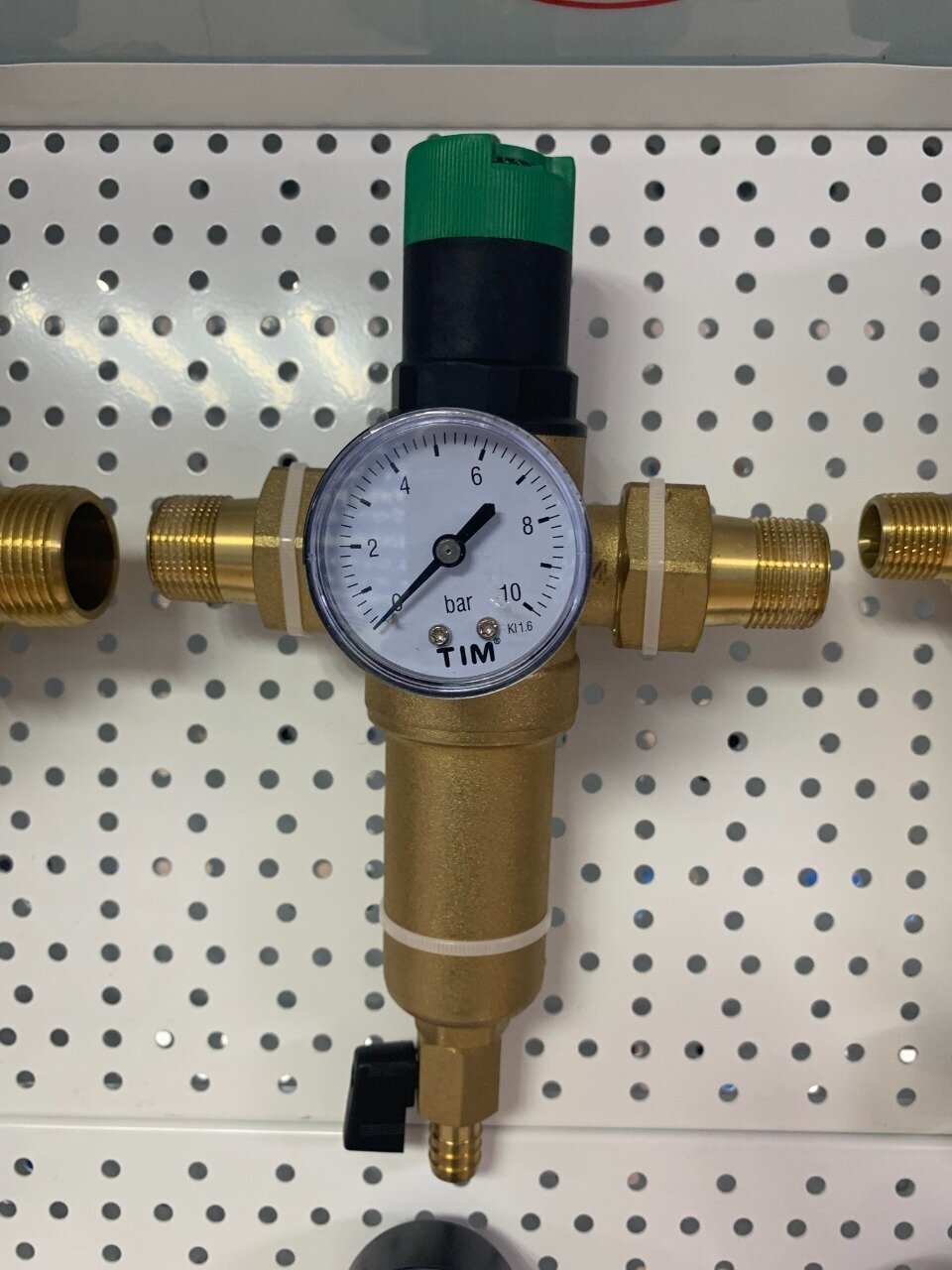 | Плюсы: | Практичная железка, 2 в 1. Промывной фильтр 100мкр и редуктор давления |