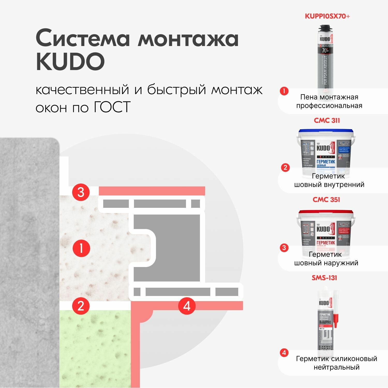 Герметик акриловый KUDO PROFF, наружный, паропроницаемый шовный, для монтажной пены при монтаже окон, SMP-351, 600 мл, белый
