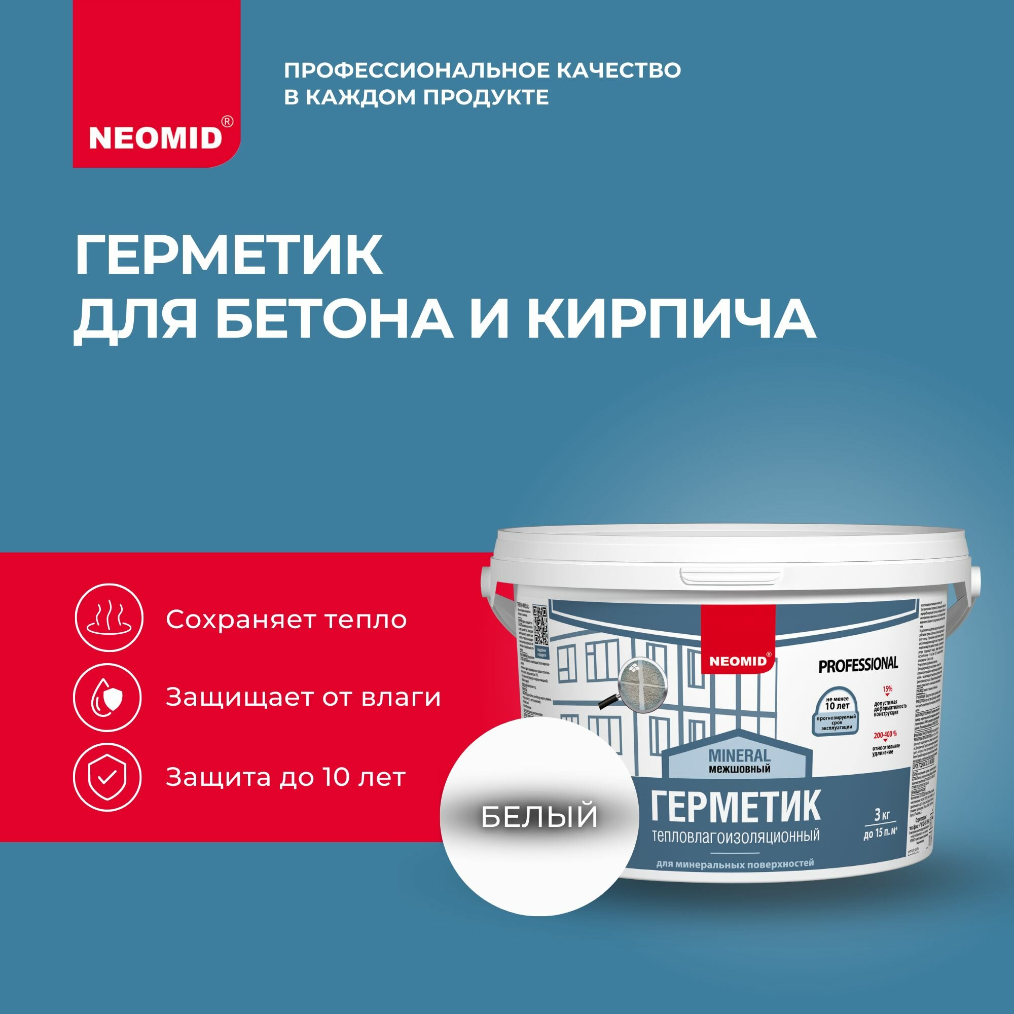 Герметик Тепловлагоизоляционный Neomid Mineral Professional 3кг Белый для Минеральных Поверхностей / Неомид Минерал.