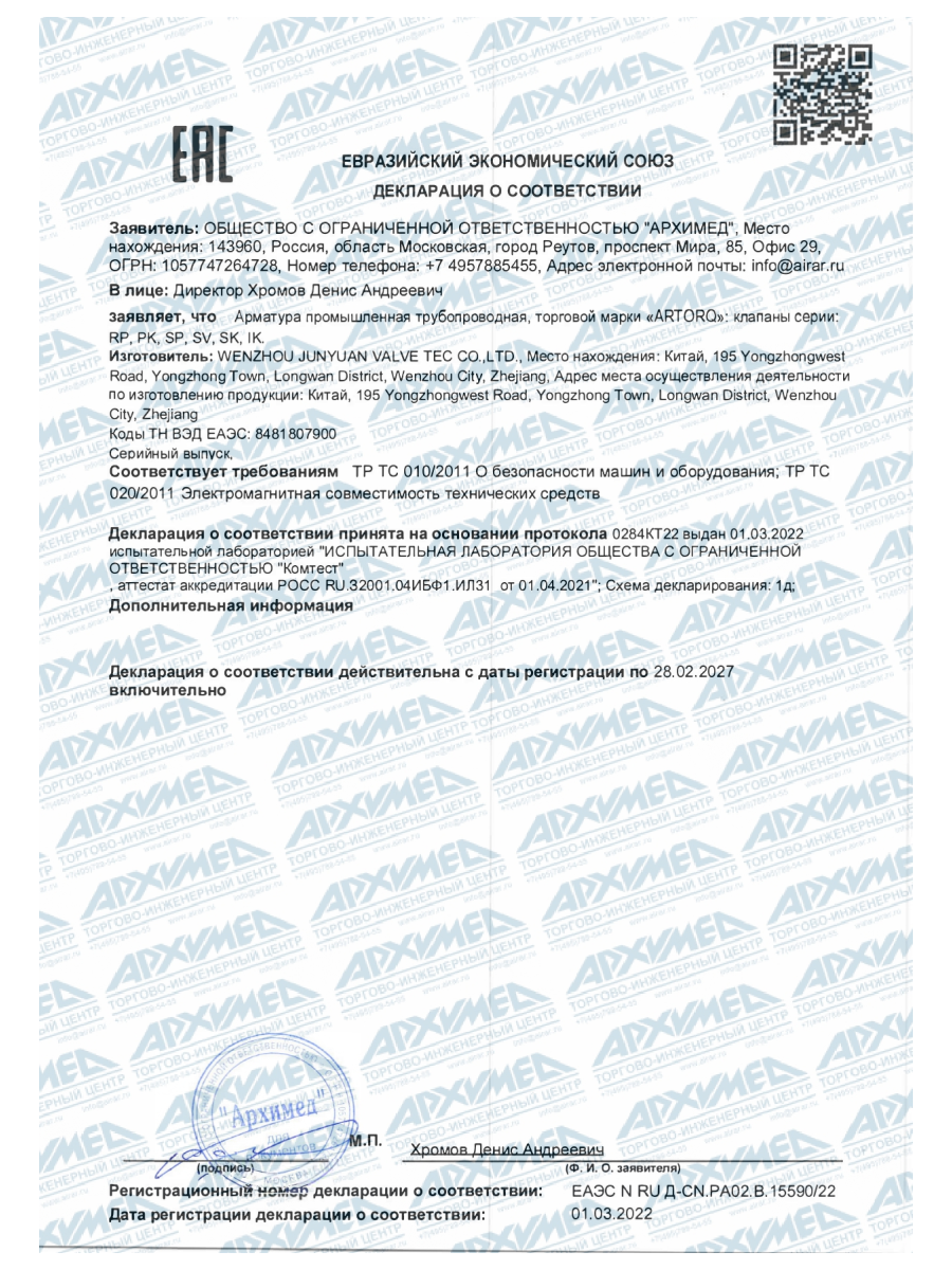Электромагнитный клапан Artorq SK25L200GN.24DC соленоидный прямого типа с мембраной принудительного подъёма интересное: