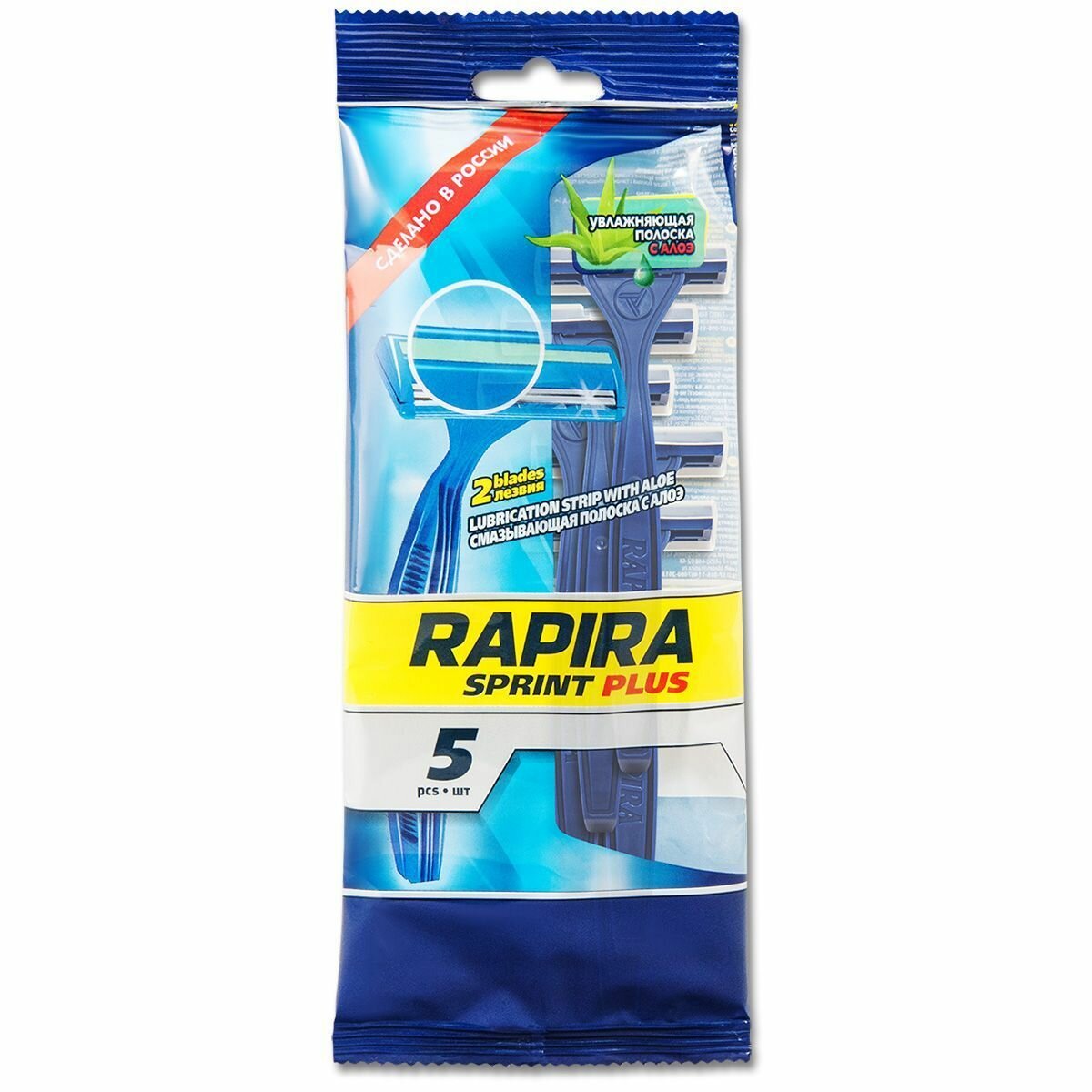 Станок бритвенный Rapira Sprint plus, со смазывающей полоской с алоэ, одноразовый, 5 шт.