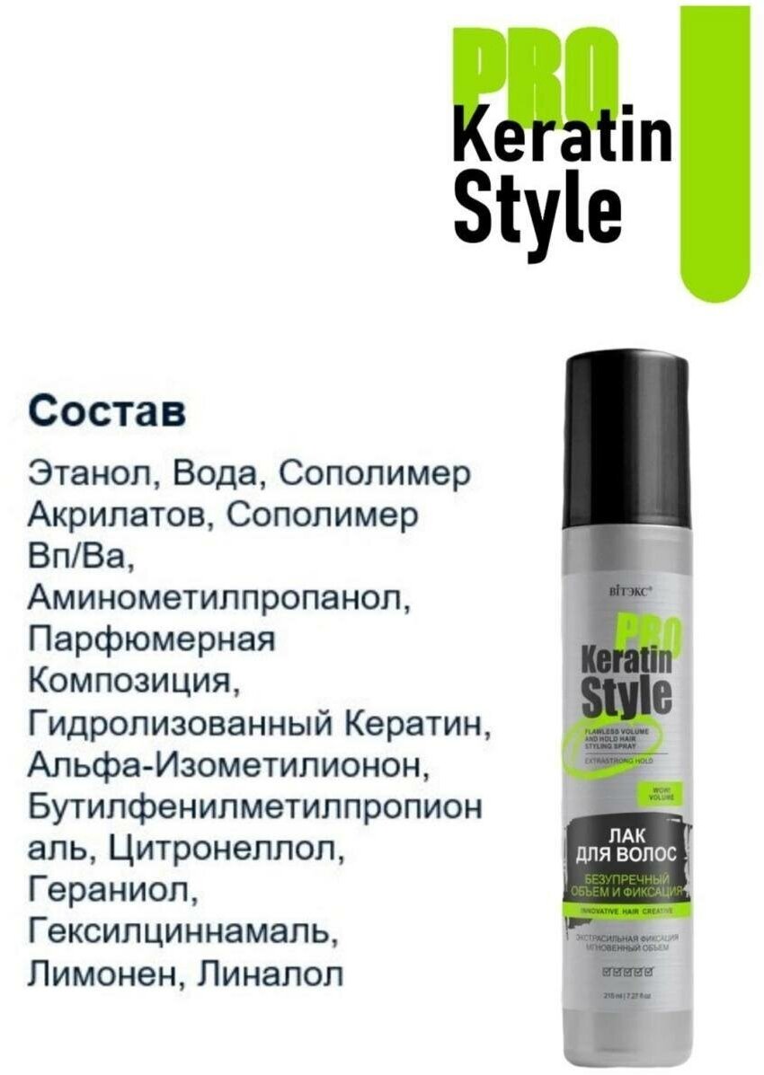 Лак для волос "KERATIN PRO Style. Безупречный объем и фиксация", экстрасильная фиксация, 215 мл