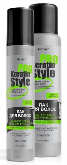 Витэкс KERATIN PRO Style Лак для волос 500мл безупречный объем И фиксация экстрасильная фиксация (запаска)