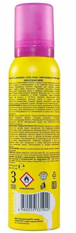 COOL RULE Пенка-мусс для укладки волос сверхсильной фиксации Кокосовый Шейк, 150 мл интересное:
