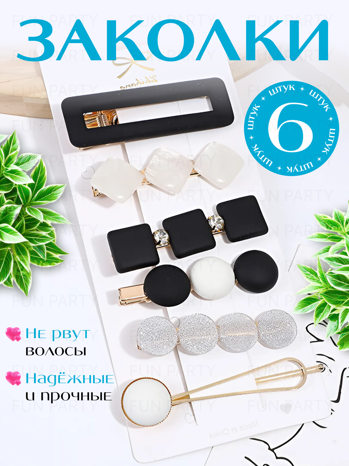 Купить Заколки Fun Party для девочек, 6 штук, черные и белые, пластик