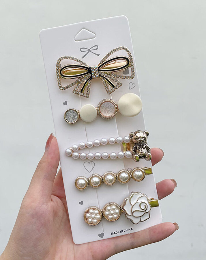 Заколки для девочек с жемчугом, 6 шт, длина 7 см