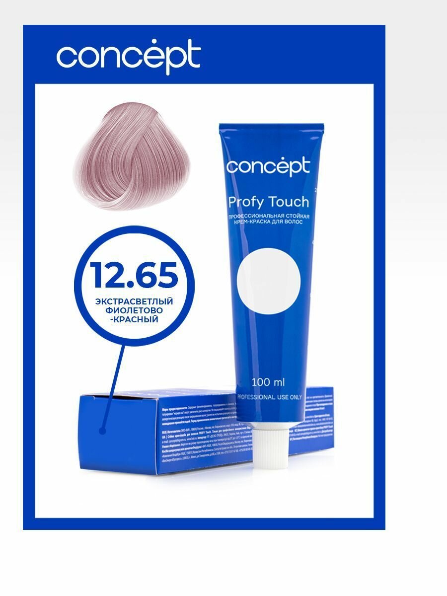 Concept, Крем-краска для волос 12.65 Экстрасветлый фиолетово-красный PROFY TOUCH, 100 мл