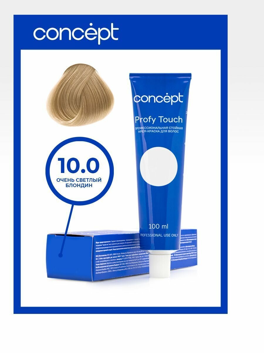 Concept Profy touch стойкая крем-краска, 10.0 очень светлый блондин, 100 мл